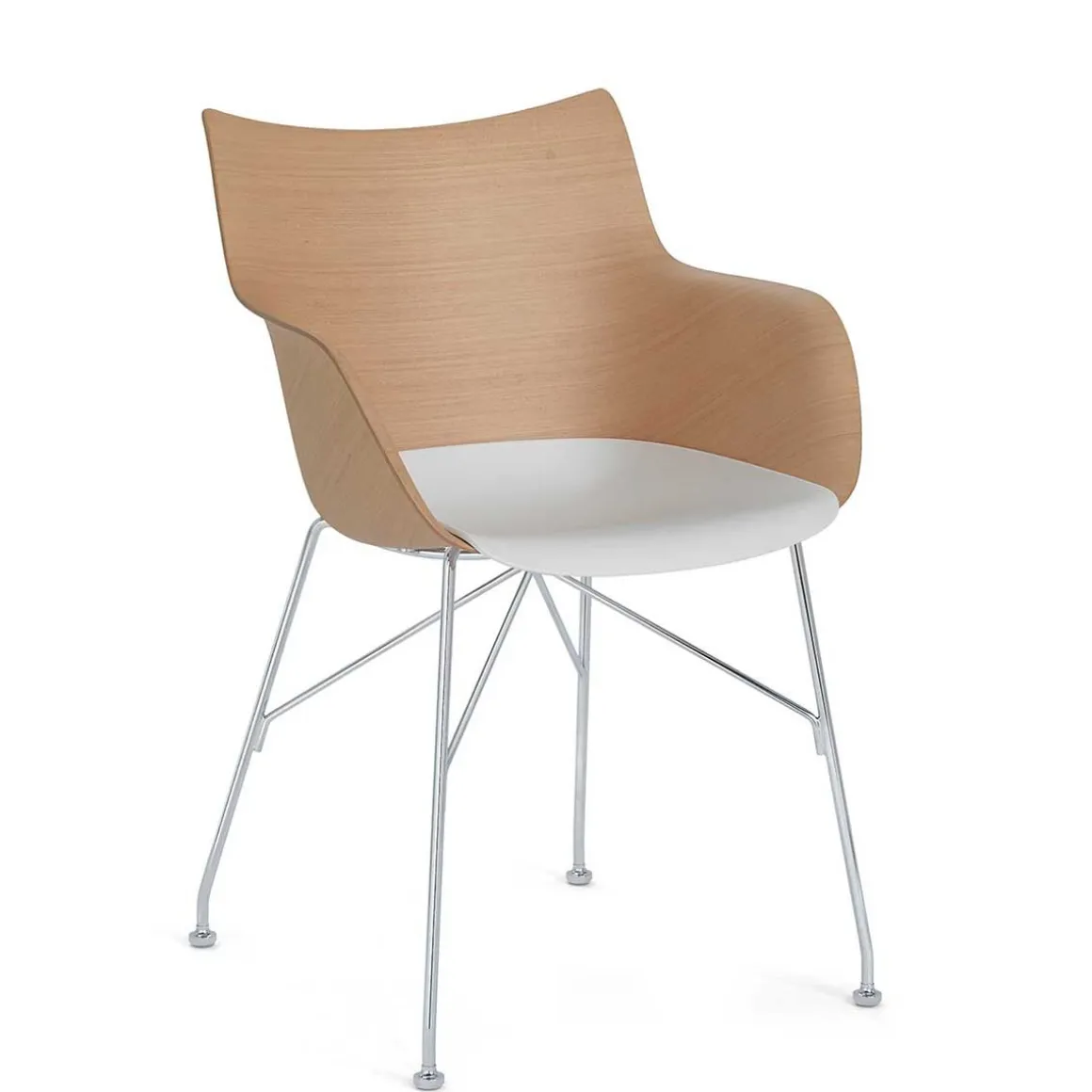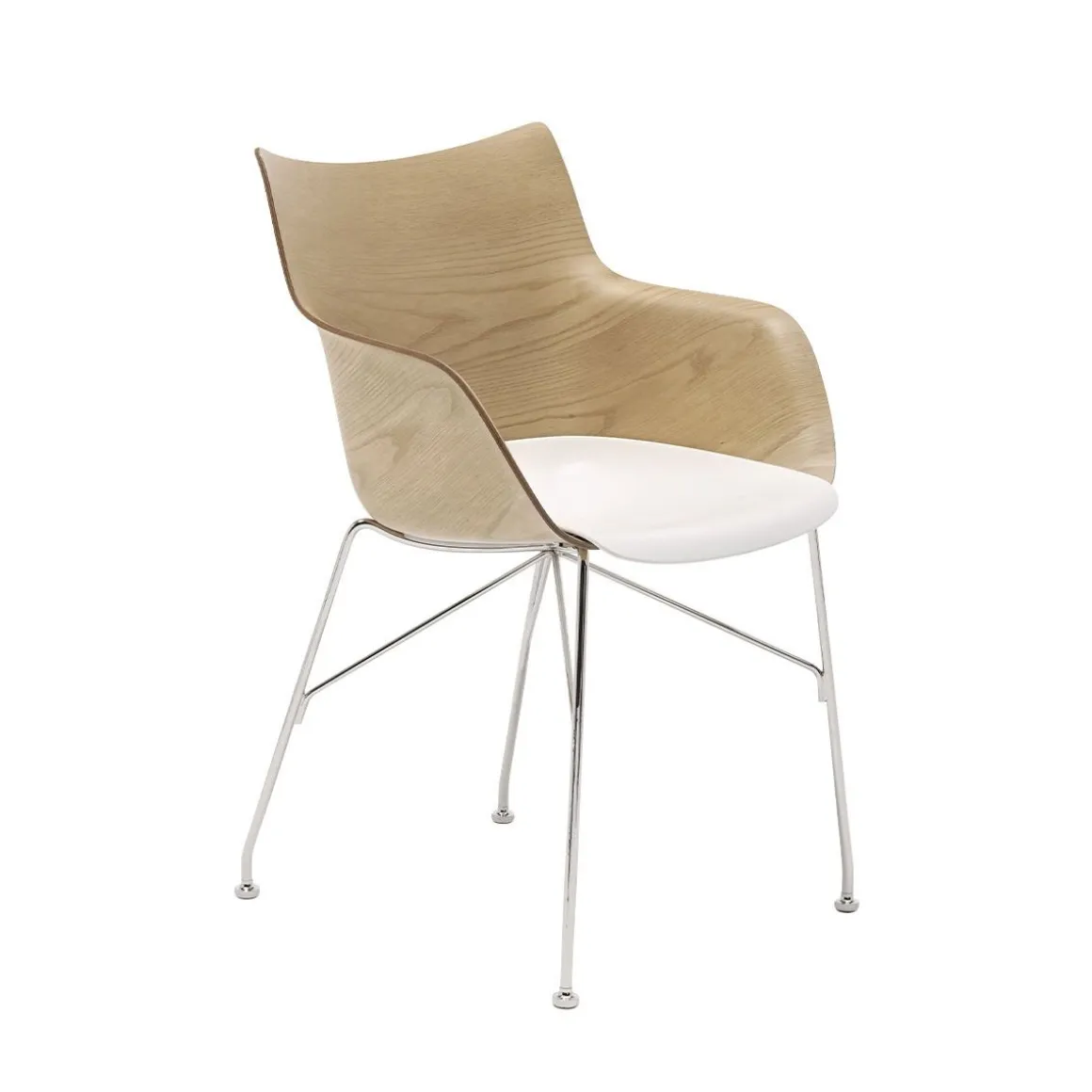 – Bois de frêne clair / assise blanche / piètement chromé