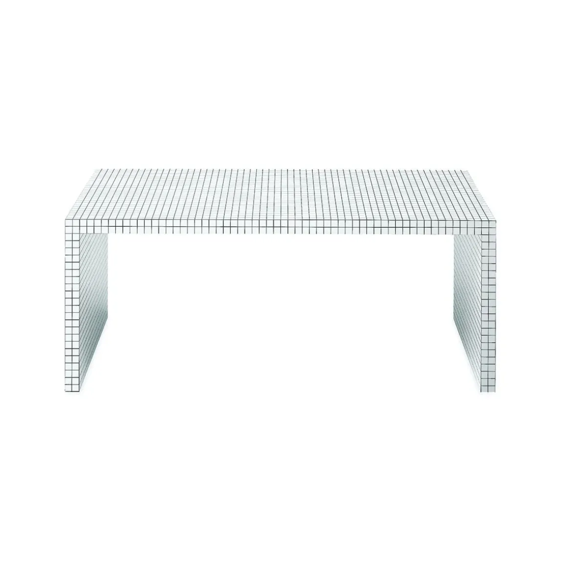 Matériaux : Structure panneau alvéolaire plaqué en Print, imprimé en sérigraphie à carrés noirs avec entraxe de 3 cm