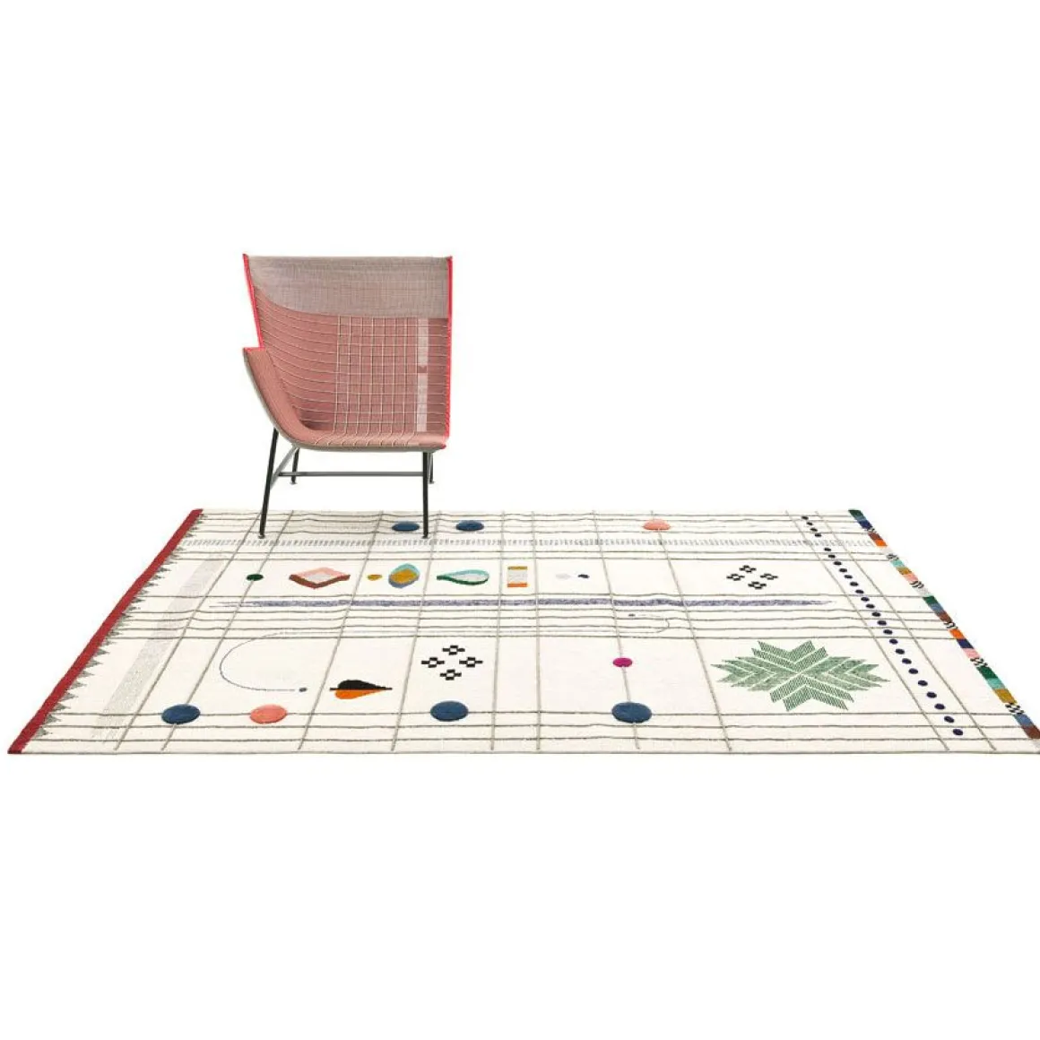 « Nous avons décidé de créer une série de tapis qui évoquent le monde sensuel et brillant de la broderie folklorique tribale de l’Inde. Nous avons voulu que notre collection pour nanimarquina fasse référence aux broderies inachevées comme des études de différentes techniques en cours, au fur et à mesure qu’elles émergent au fil du temps. Les compositions spontanées des tapis incarnent la sérendipité et la liberté d’improvisation inhérentes à chaque étape d’une pièce faite à la main. Joyeux, irrévérencieux et unique. » Doshi Levien