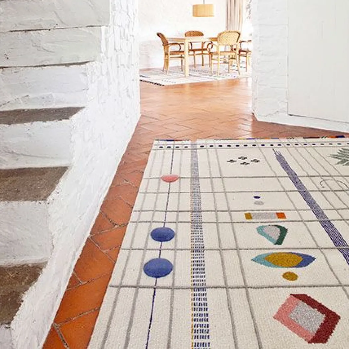 La collection Rabari designé Nipa Doshi + Jonathan Levien pour la marque Nanimarquina. Elle est créée avec de la laine 100% néo-zélandaise, fabriquée à la main en Inde avec des techniques Sumak nouées à la main et tissées à la main.