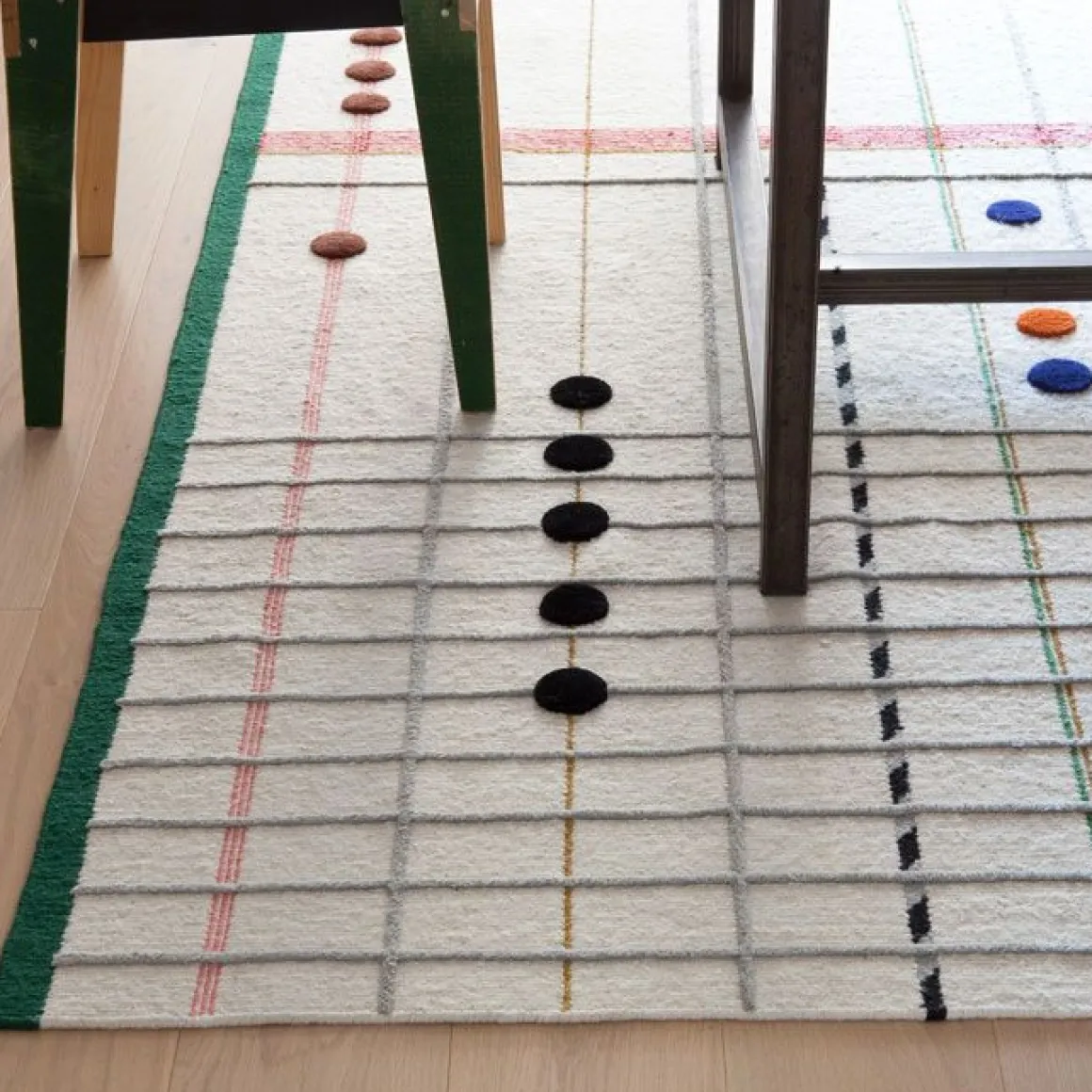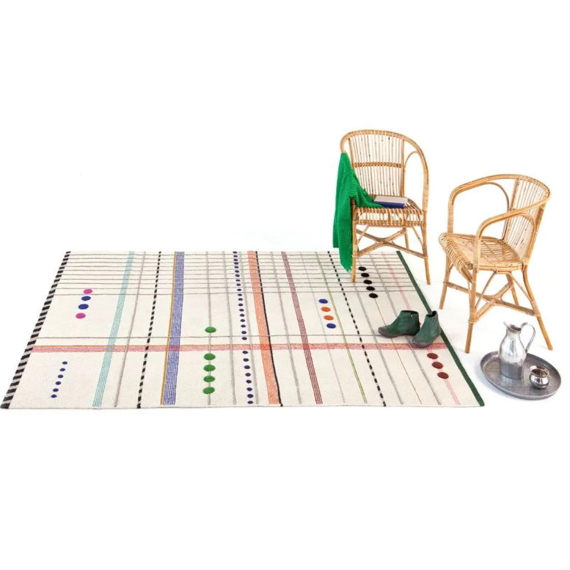 La collection Rabari designé Nipa Doshi + Jonathan Levien pour la marque Nanimarquina. Elle est créée avec de la laine 100% néo-zélandaise, fabriquée à la main en Inde avec des techniques Sumak nouées à la main et tissées à la main.