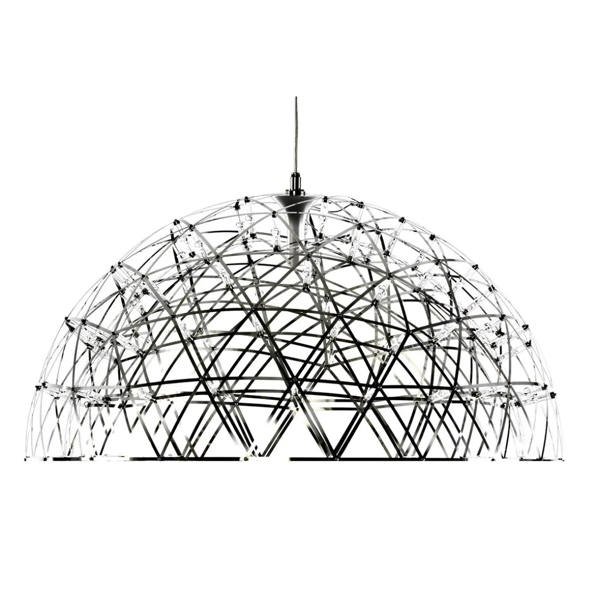 La suspension Raimond Dome 79 est une construction en inox faisant office de support et qui a comme alimentation une myriade de diodes lumineuses. Inspirée de la géométrie triangulaire du dôme géodésique, la circulaire et les lumières ovales sont faites avec une couche intérieure et extérieure pour lui donner plus de force. La structure intérieure et extérieure conduit l’électricité par le LEDS placées au niveau des nœuds de la structure. Son style en forme de dome renvoie un effet design et raffiné pour une déco toujours plus élégante.