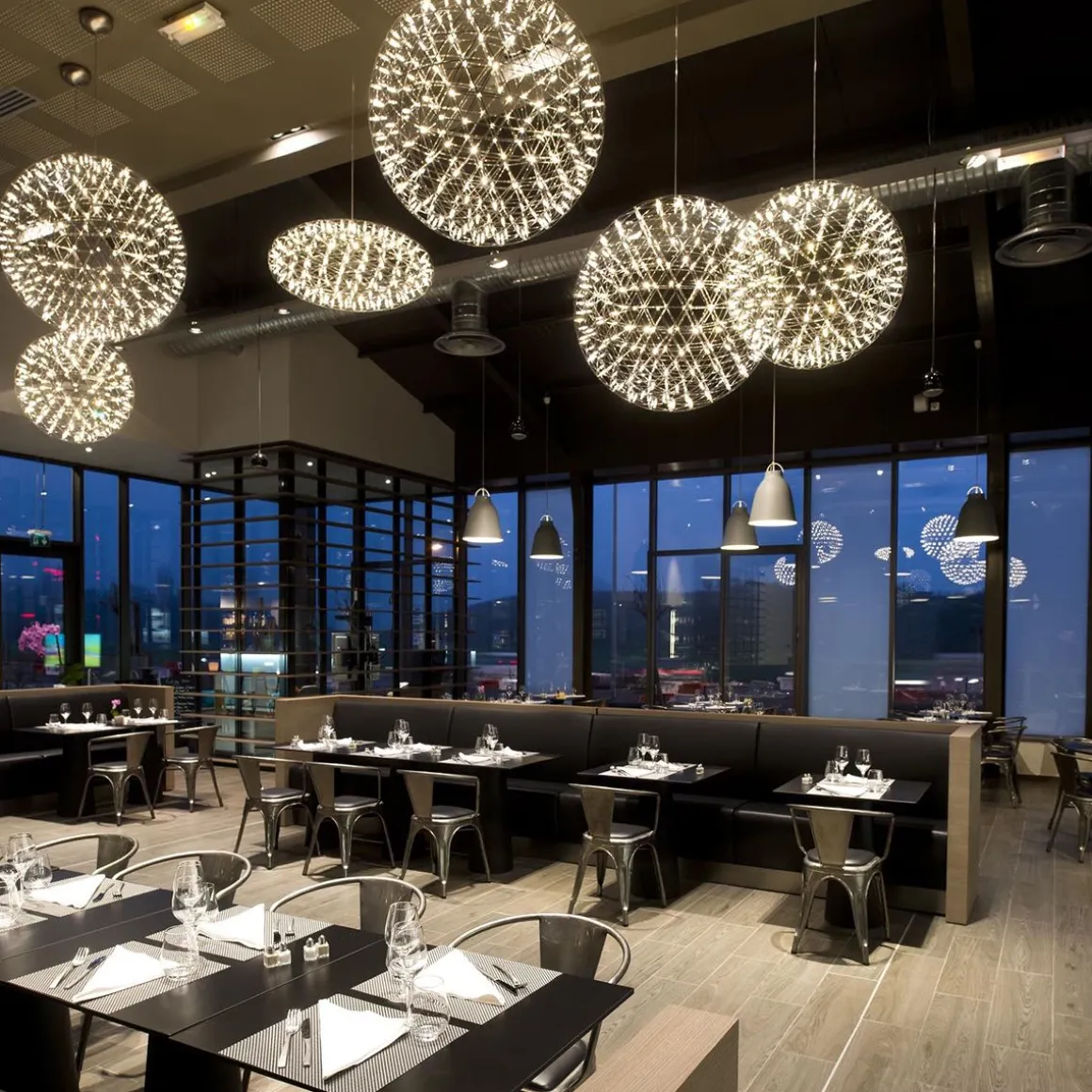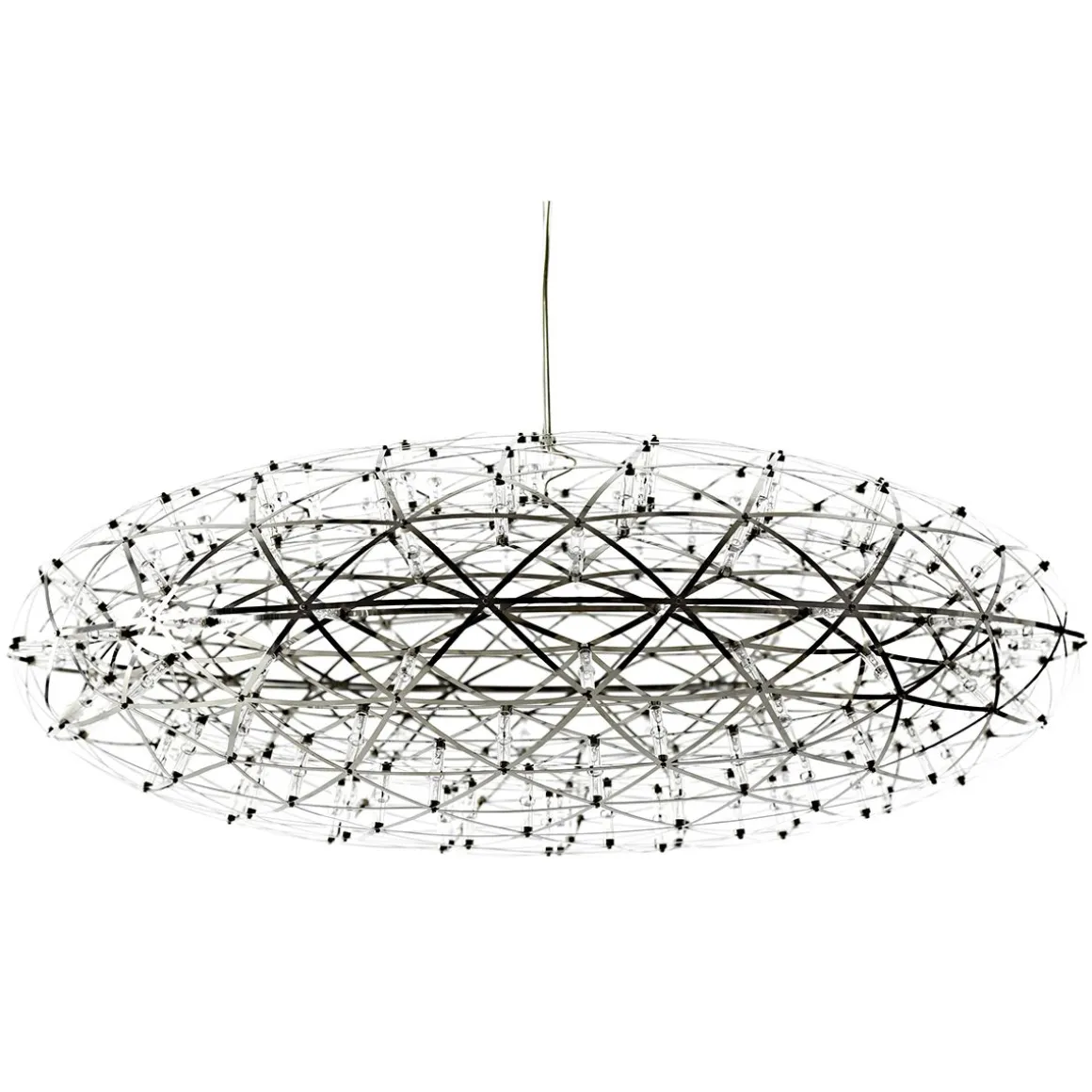 Raimond Zafu est une suspension design créée par Raimonds Puts avec OX-ID pour Moooi. Raimond Zafu contient 162 lampes LED. Regarder les étoiles est maintenant possible même pendant les nuits couvertes. Les sphères complexes de Raimond transportent le courant électrique. Les terminaux joignent alors ces chemins pour créer une ambiance atmosphérique.