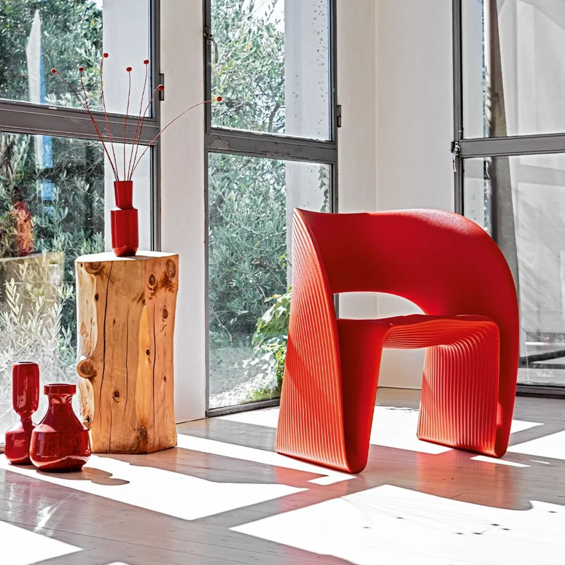Raviolo est un fauteuil créé par Ron Arad pour Magis. Le designer a repoussé encore une fois les limites après Voido. En rotation moulé, cette chauffeuse est un petit chef d’oeuvre aussi bien technologique que design. On adore les lignes continues, les courbes généreuses et le design original ! Conçu pour l’extérieur, il sera possible d’apporter une touche colorée à votre extérieur avec ce superbe fauteuil Raviolo !