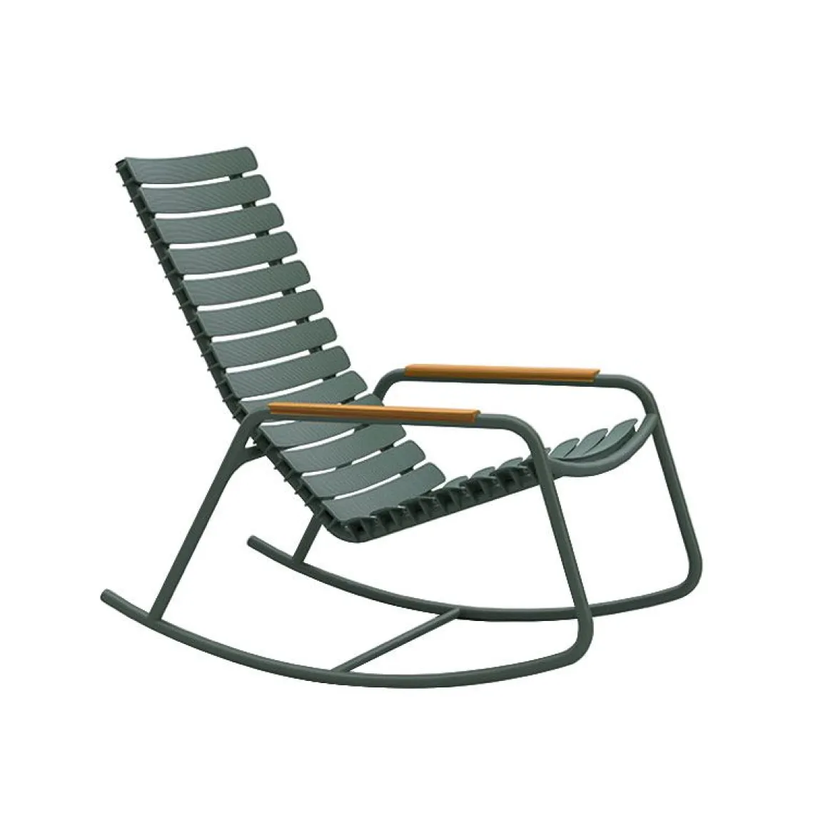 ReCLIPS est une ligne de chaises avec de larges lamelles en plastique clipsées sur un cadre en aluminium enduit de poudre légère. Les lamelles sont fabriquées à partir de déchets plastiques ménagers danois et produites au Danemark. La technologie de réutilisation des déchets ménagers en plastique pour la production de meubles est développée au Danemark. Donc, en regardant ReCLIPS, vous regardez essentiellement le résultat du mélange du design danois et de l’innovation danoise dans l’application de nouvelles idées et de nouveaux matériaux dans une chaise. Les fauteuils à bascule ReCLIPS sont disponibles en 4 couleurs mono avec le choix d’accoudoirs en bambou ou en aluminium. Le cadre en aluminium combiné avec les lamelles en plastique protégées contre les UV, réduisent au minimum l’entretien.