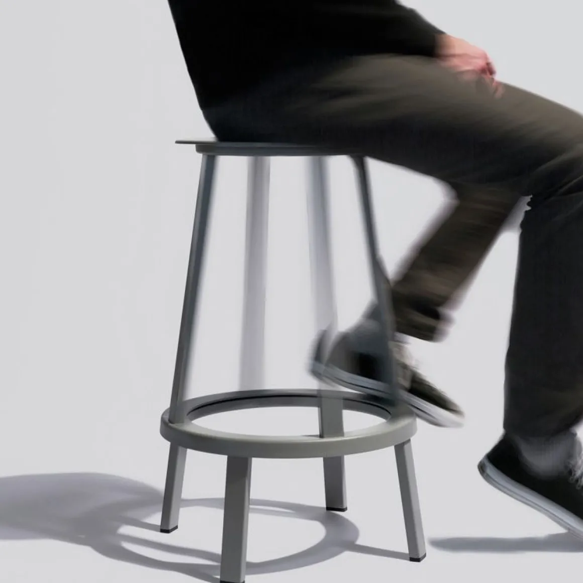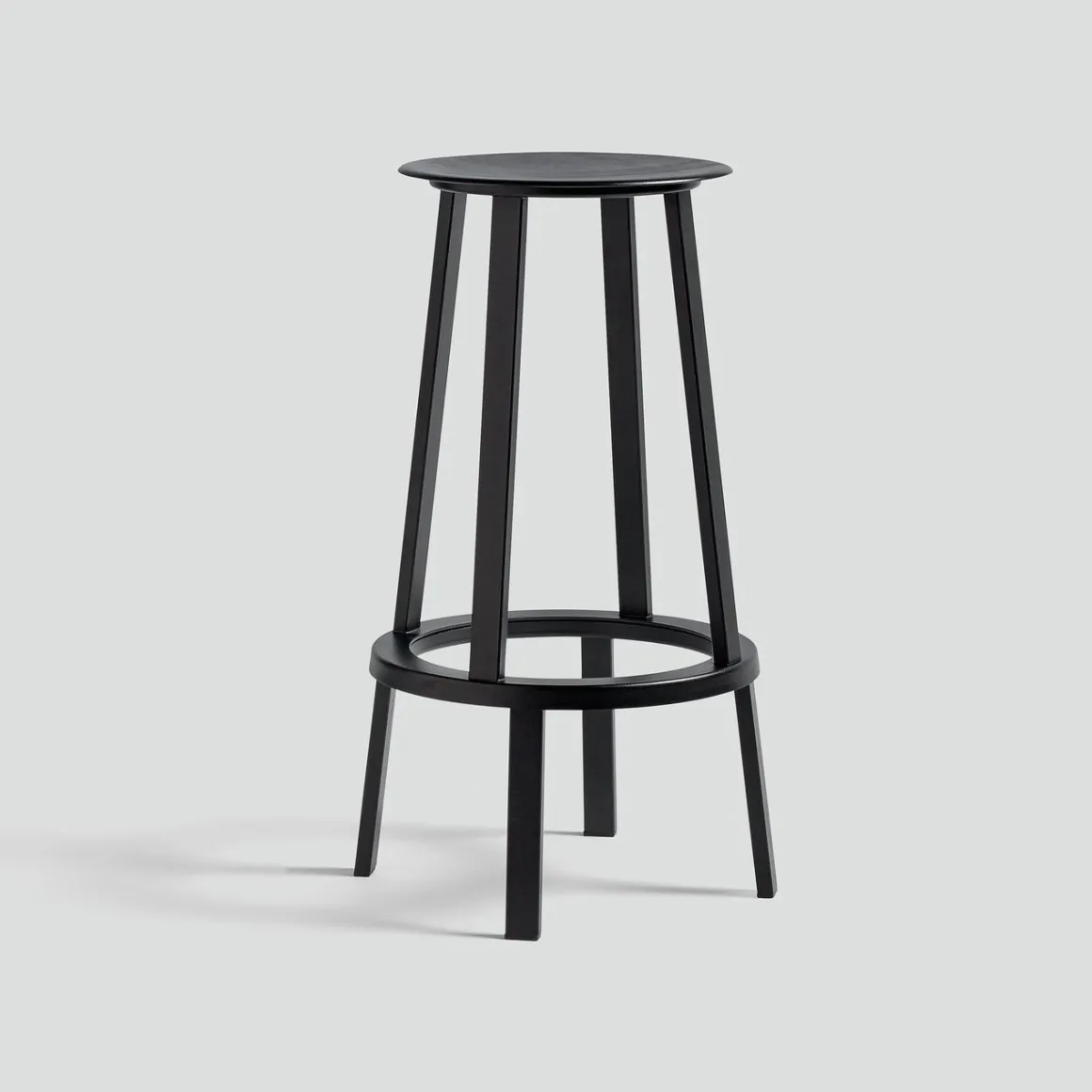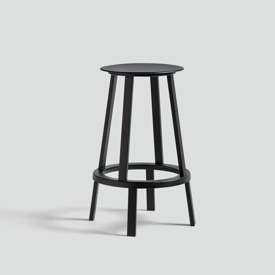 Revolver Tabouret de Hay. Le tabouret Revolver a une assise ronde et un repose-pieds circulaire avec un système de roulement à billes intégré qui permet de le faire pivoter de 360°. Dessiné par le designer new-yorkais Leon Ransmeier, ce tabouret haut en métal possède une silhouette atypique avec son système de rotation surprenant ! Revolver se compose de deux parties superposées assez distinctes visuellement. La base fixe en bas est surmontée d’un anneau rotatif qui permet à la partie supérieure du tabouret de pivoter à 360 °. Toute la partie supérieure du tabouret est mobile : ce n’est pas seulement l’assise qui pivote mais également les quatre pieds supérieurs. Ce tabouret illustre le travail de Ransmeir avec ses meubles graphiques qui ne révèlent pas à première vue leur spécificité fonctionnelle. Un tabouret fonctionnel et design étonnant !