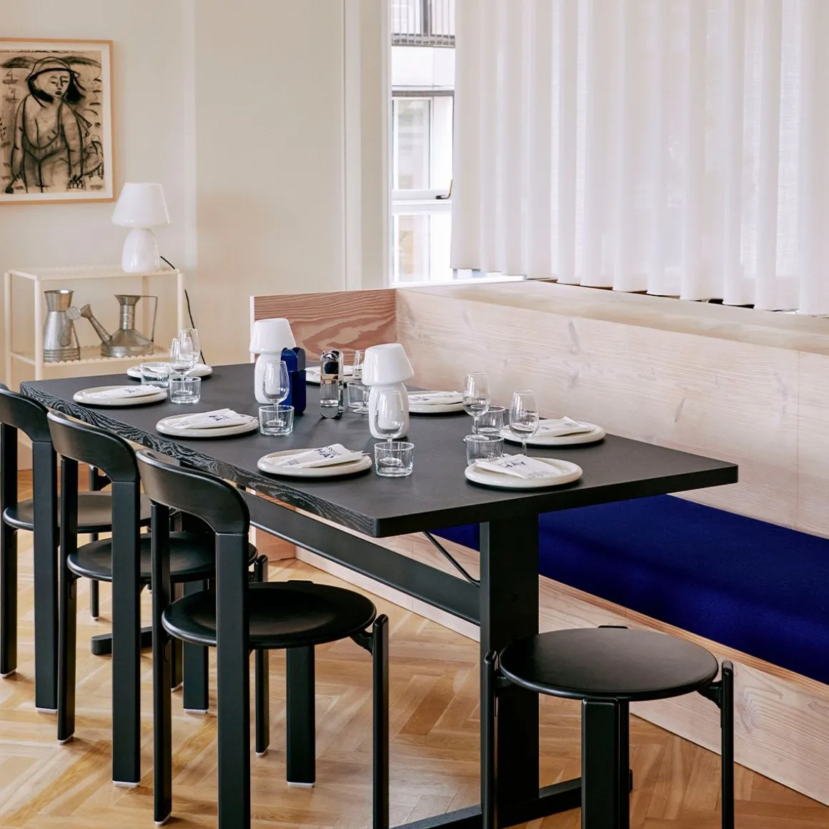 Inspiré de la collection Rey originale conçue par le designer suisse Bruno Rey en 1971, HAY s’est associé à Dietiker pour relancer le tabouret Rey. Doté de la connexion bois-métal sans vis unique de Dietiker, le tabouret emblématique présente une silhouette épurée avec des pieds inclinés qui équilibrent les bords arrondis distinctifs. Sa construction solide, sa résistance et sa conception empilable lui confèrent une qualité intemporelle qui le rend adapté à une utilisation dans une grande variété d’environnements domestiques, publics ou professionnels. Fabriqué en bois massif, il est disponible dans des couleurs originales, ainsi que dans de nouveaux tons sélectionnés par HAY. La collection Rey n’est pas disponible chez HAY en Suisse.
