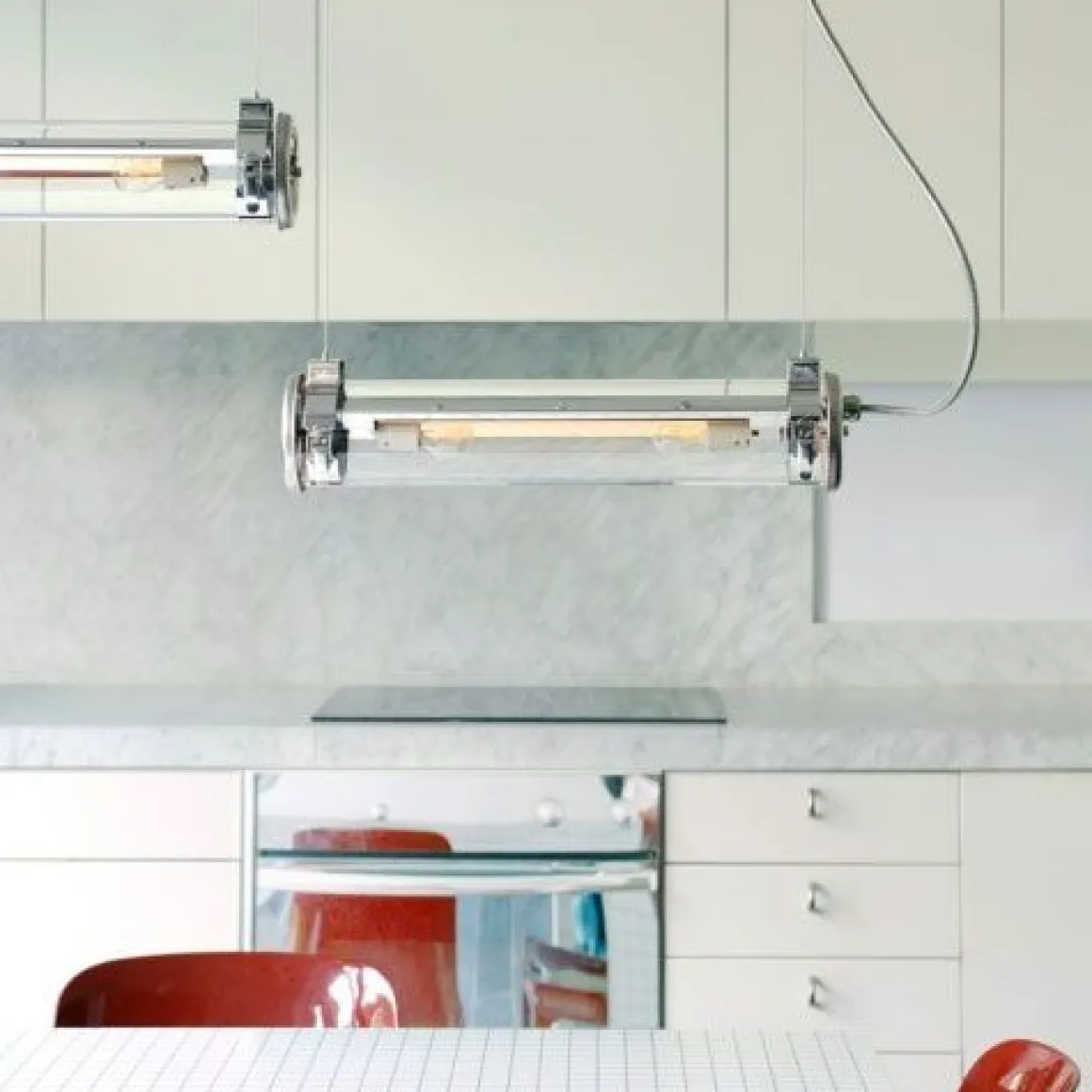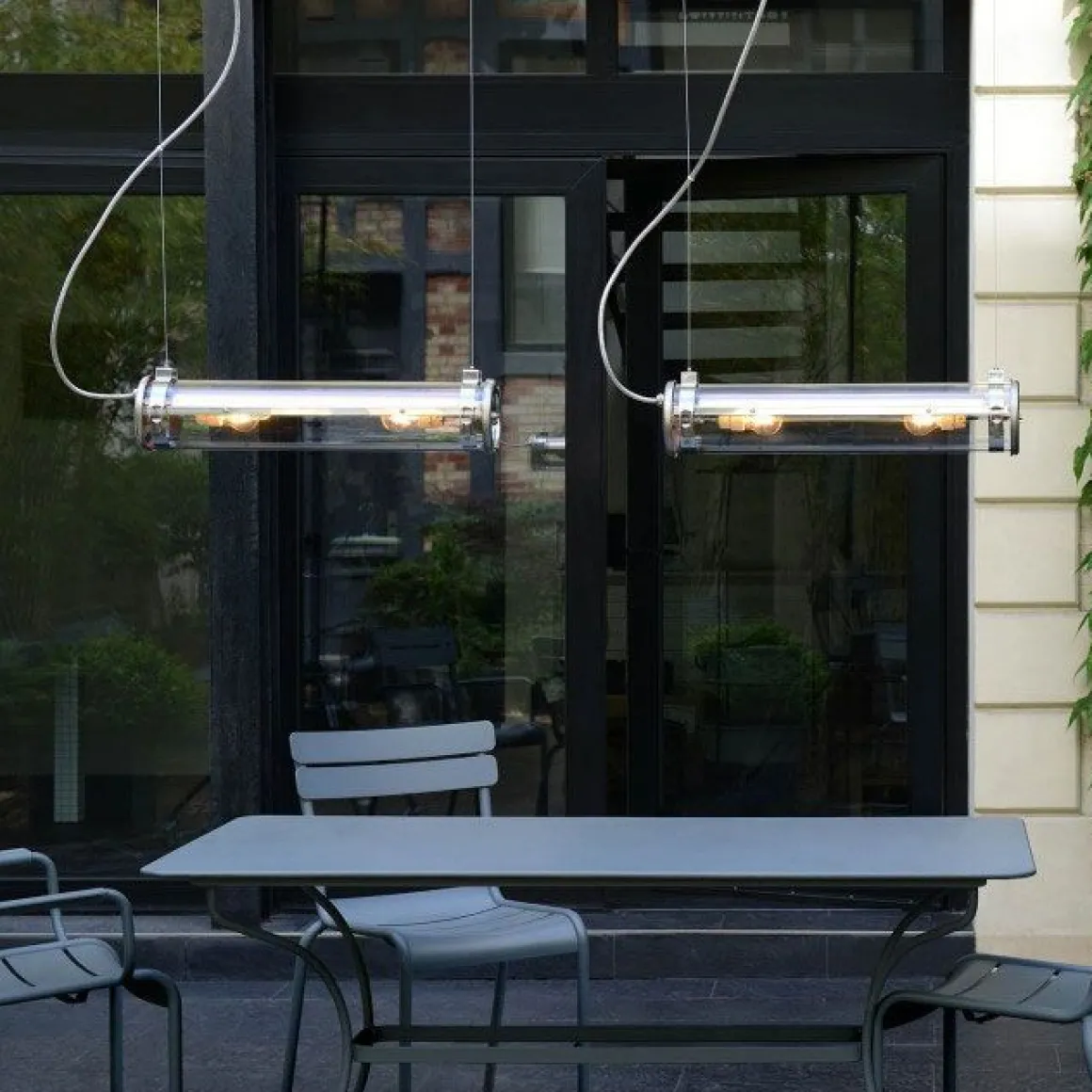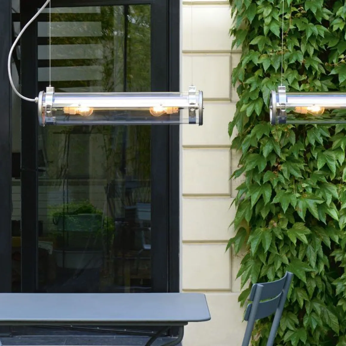 Matériaux : pour l’intérieur et l’extérieur, flasques et collier inox, corps verre borosilicaté, réflecteurs aluminium anodisé