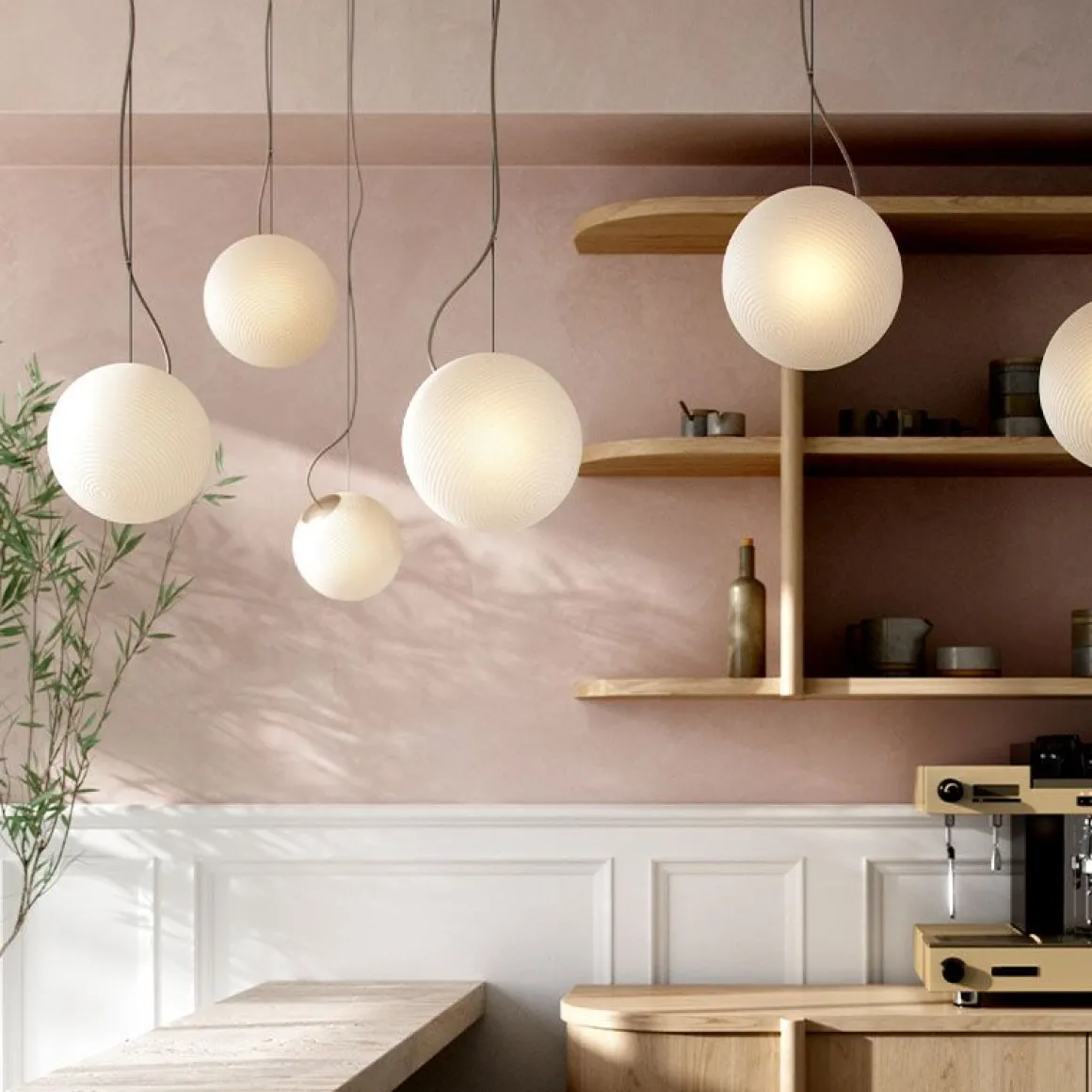Bright Ripple est classique et Bright Barocco, est baroque. Les deux lampes sont chacune des exemples polémiques des deux langages esthétiques universels, et entre eux vous avez le spectre complet.
