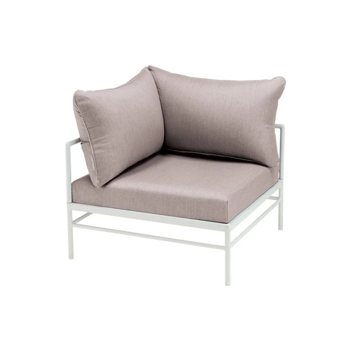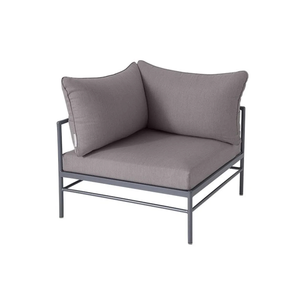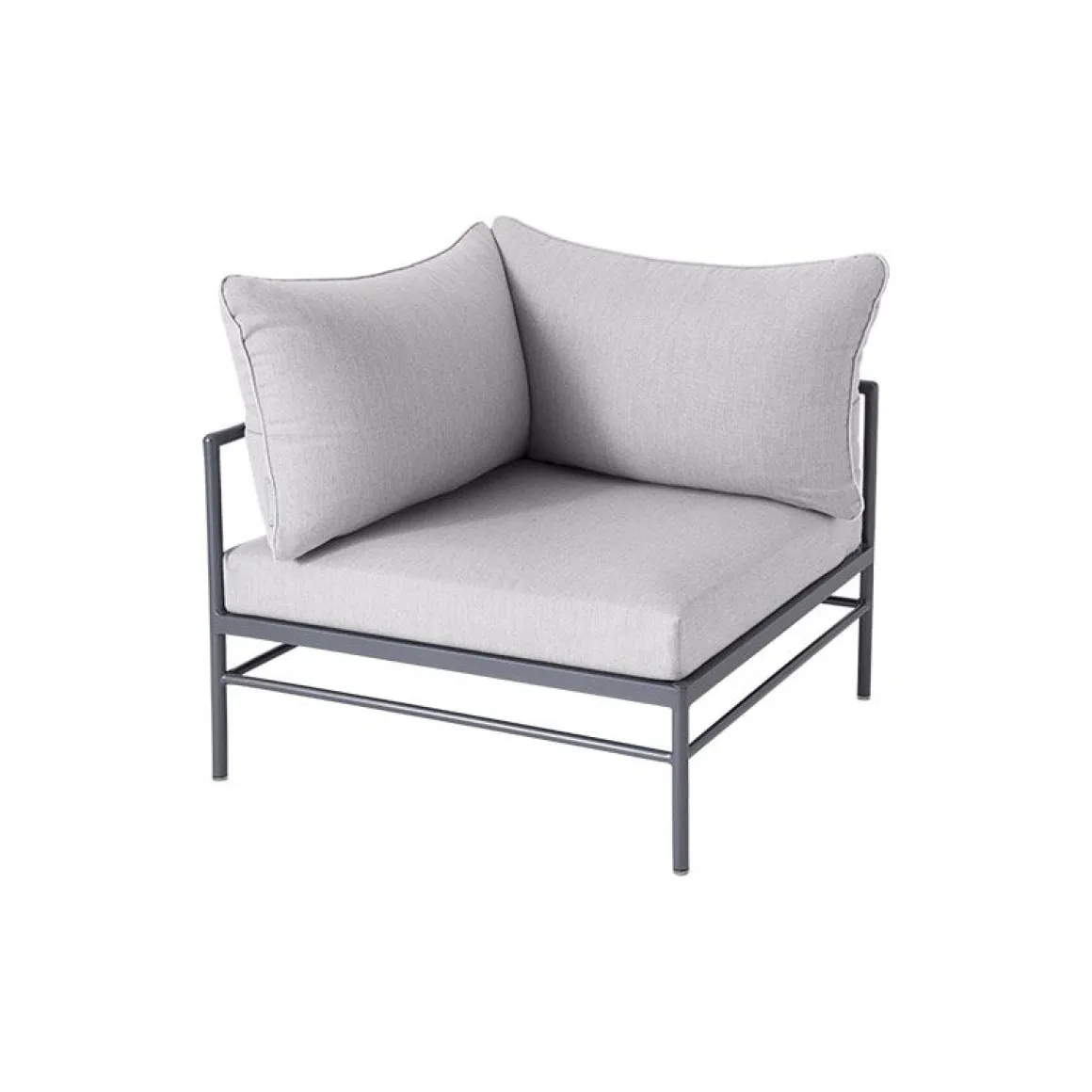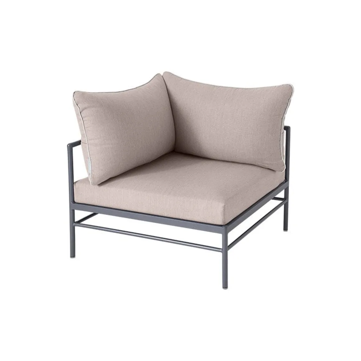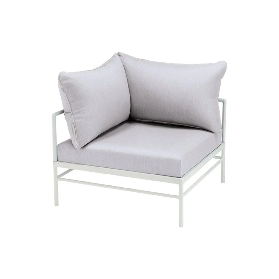 Le fauteuil d’angle Rivage permet de créer un salon d’extérieur ultra confortable. Il mixe une fine structure en aluminium à des coussins moelleux habillés d’un tissu haut de gamme. Il présente une extrême résistance aux intempéries et aux UV. Les coussins sont habillés d’un superbe revêtement gris clair orné d’un élégant passepoil bleu lagune. Ce tissu Sunbrella outdoor a été imaginé par le bureau de style Lyonnais »Aujourd’hui ou Mardi », spécialisé dans le design textile. Spécialement adapté à l’extérieur, ce tissu est déperlant, traité anti-tache, déhoussable et lavable en machine. Le rembourrage en mousse polyuréthane haute résilience assure un excellent confort d’assise.