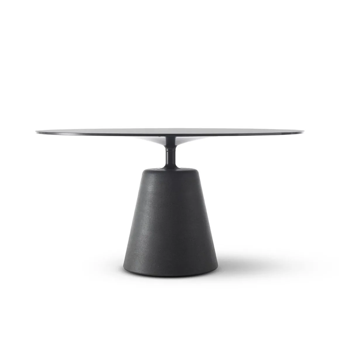 La base est réalisée en béton UHPFRC (bétons-fibrés-renforcés-ultra-performants), aux caractéristiques technico-structurelles élevées. La coloration en masse est une caractéristique fondamentale des éléments. La finition et la coloration de la base ont lieu à travers un mélange magistrale de sables et d’éléments naturels. Le mélange de ce matériau particulier et le processus de maturation en relation avec les changements climatiques peuvent entraîner des irrégularités visuelles du design et de la couleur. Les nuances, la non-uniformité de la surface et de la couleur doivent être considérées comme des caractéristiques de qualité et d’unicité. Le dessin particulier de la jonction entre la base et le tube de la table crée un détail technico-esthétique agréable et élégant. Les composants, le tube de jonction et la flasque sous le plateau, sont réalisés en aluminium et peints à la poudre dans le coloris gris graphite mat.
