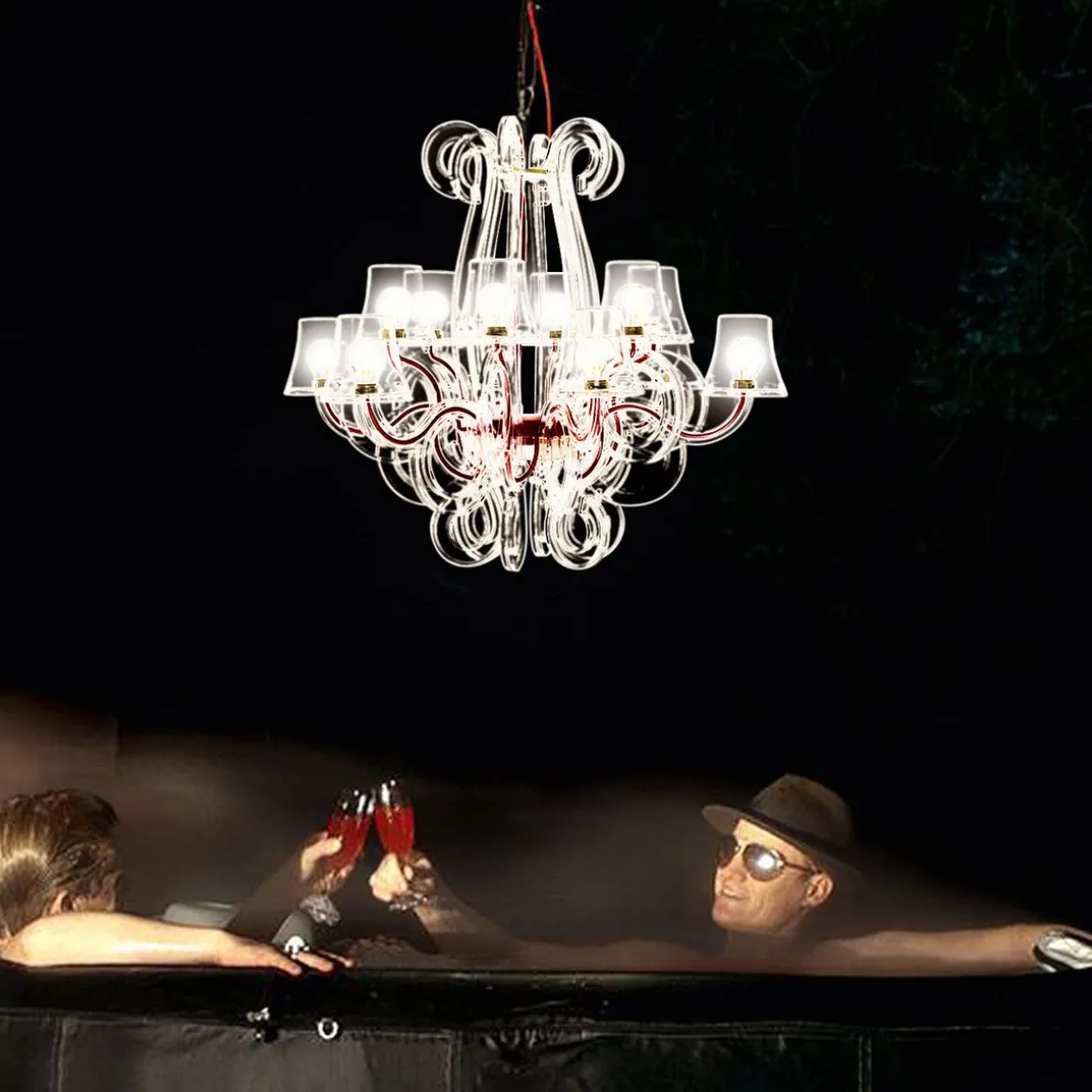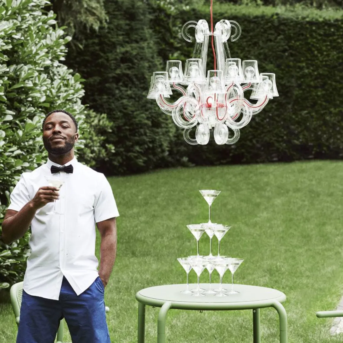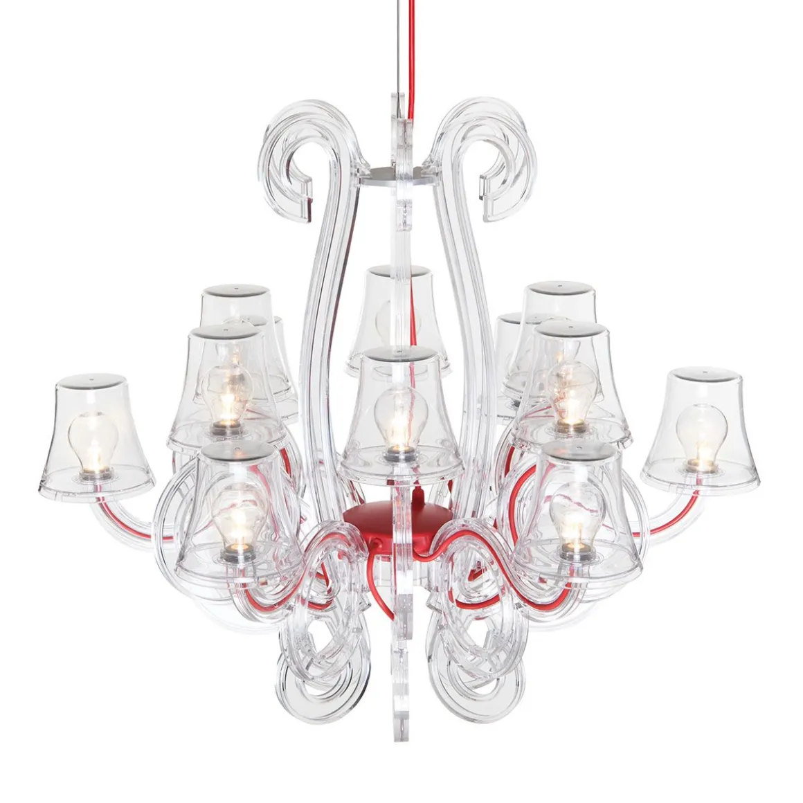 Rockcoco est un lustre créé par DeMarkersVan pour Fatboy. C’est à eux que nous devons ce luminaire translucide rehaussé de son câblage rouge et qui, sans doute, trouverait sa place dans les flamboyances du règne de Louis XV. Ceci dit, ne vous fiez pas à son apparence, le Rockcoco n’est pas un accessoire de mode uniquement frivole, c’est le premier lustre jamais conçu pour être utilisé dehors ! Vous pourrez même l’installer au dessus d’une surface d’ eau pour constater combien il s’harmonise avec votre costume de bain! Et le summum de tout cela, c’est qu’avec le Rockcoco… vous pouvez même voir dans le noir. Allez… lumière svp !