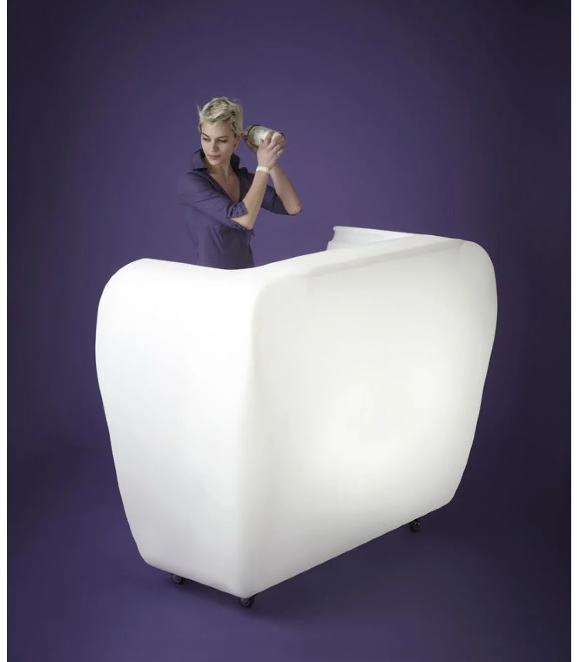 Roller bar est la dernière création du designer belge Gerd Van Couteren pour Slide. Polyvalent et novateur, le comptoir du bar est idéal pour créer un coin design dans votre jardin, dans un restaurant. Pratique, il est facile à déplacer grâce aux roulettes et a des étagères pour rangement. Lumineux, il apportera une touche design et tendance à votre extérieur.