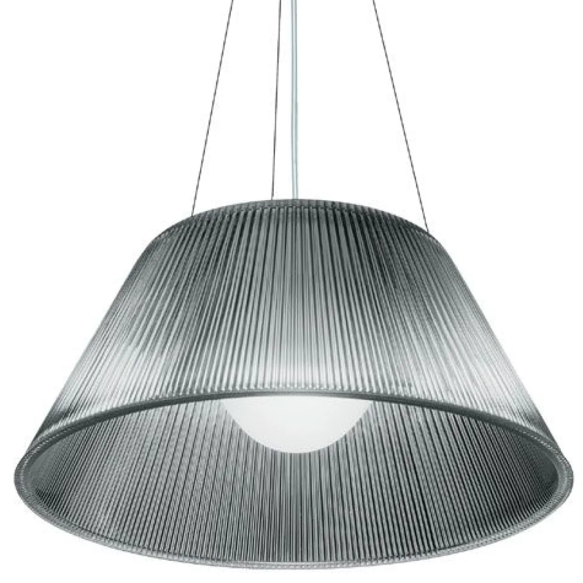 Romeo Moon est une belle suspension dessinée par Philippe Starck. Lignes pures, lumière diffuse, cette suspension offre une ambiance douce et chaleureuse. Mais donne une touche design et tendance à votre intérieur par son abat-jour en verre.