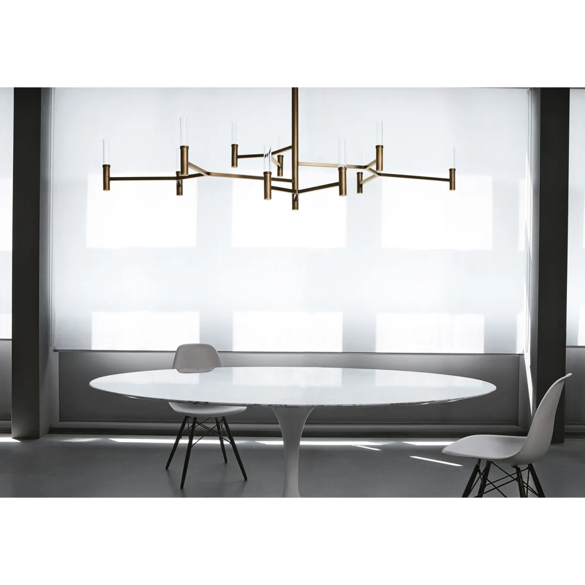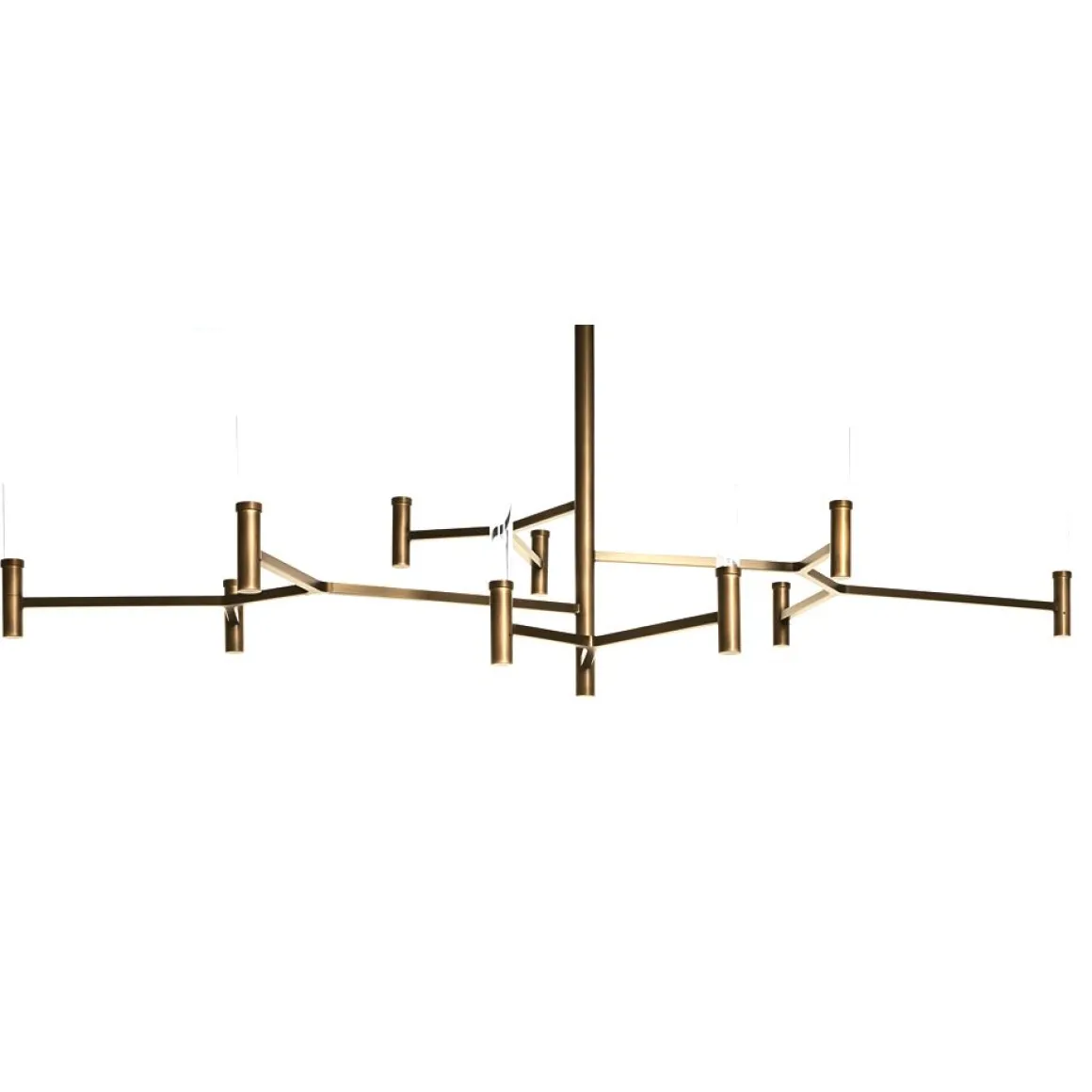 Roots Chandelier est une lampe suspendue à lumière diffuse. Sa structure en laiton bruni léger et diffuseurs en verre soufflé blanc de Murano apportent une touche grandiose à votre intérieur. De sa forme rappelant un chandelier, ses branches lumineuses apportent volupté et design.