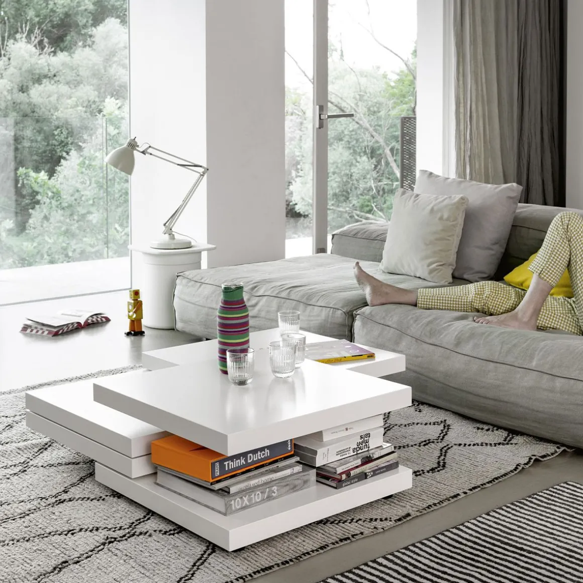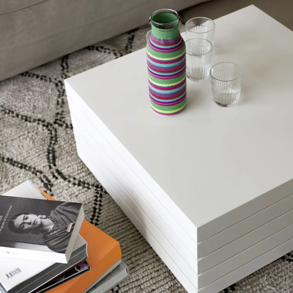 Rotor est une table créée par Luciano Bertoncini pour Kristalia. Une table basse pour l’espace jour, capable de changer de forme grâce à des pièces mobiles donnant naissance à des lignes géométriques en constante mutation. Le plateau du dessus et celui du dessous sont fixes tandis que les trois plateaux au centre peuvent tourner à 360°, modifiant les possibilités de rangement et d’utilisation. Lorsqu’il est complètement fermé, Rotor se présente comme un élément compact et essentiel, 63×63 cm.