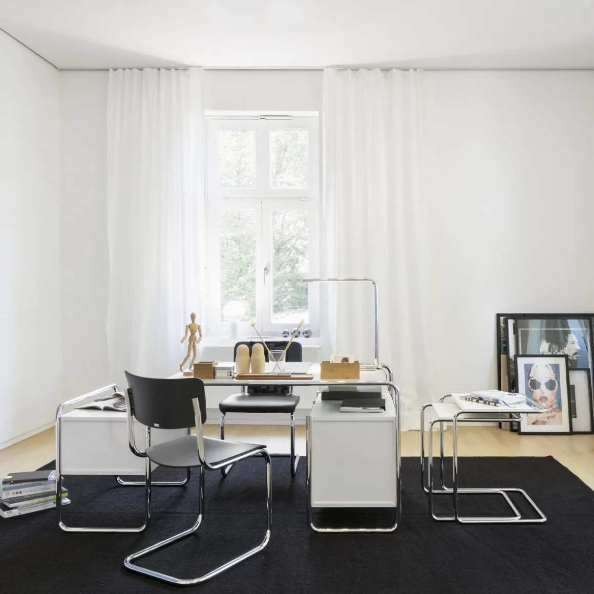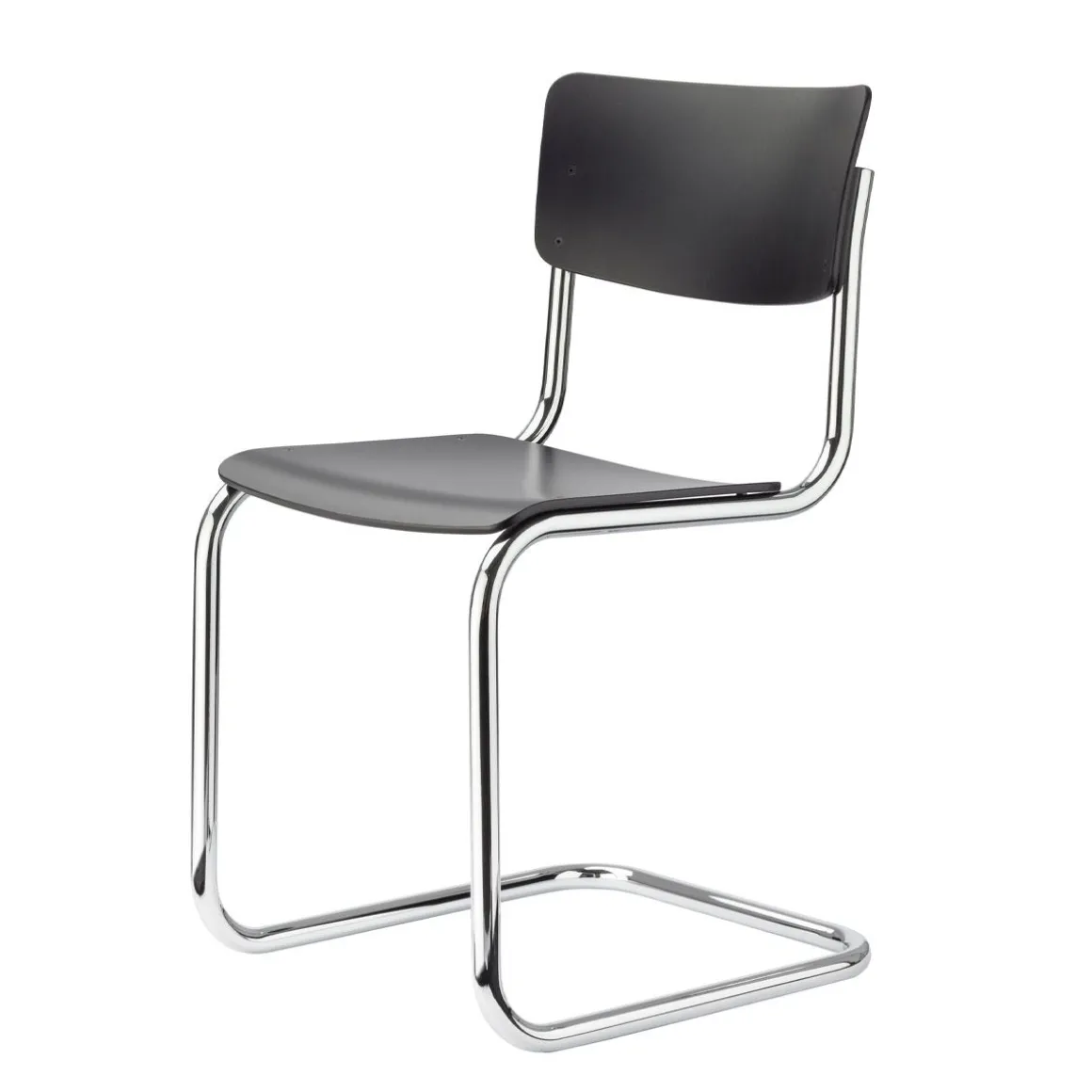 Mart Stam a obtenu la plus grande réduction possible avec la chaise en porte-à-faux S 43 en combinant le cadre en tube d’acier avec des éléments en bois moulé pour l’assise et le dossier. La forme pure et sobre de cette chaise en porte-à-faux en fait un design exemplaire dans l’esprit du modernisme. Aujourd’hui, Thonet détient les droits d’auteur artistiques de la chaise strictement cubique sans pattes arrière.