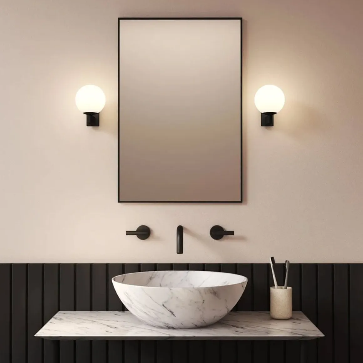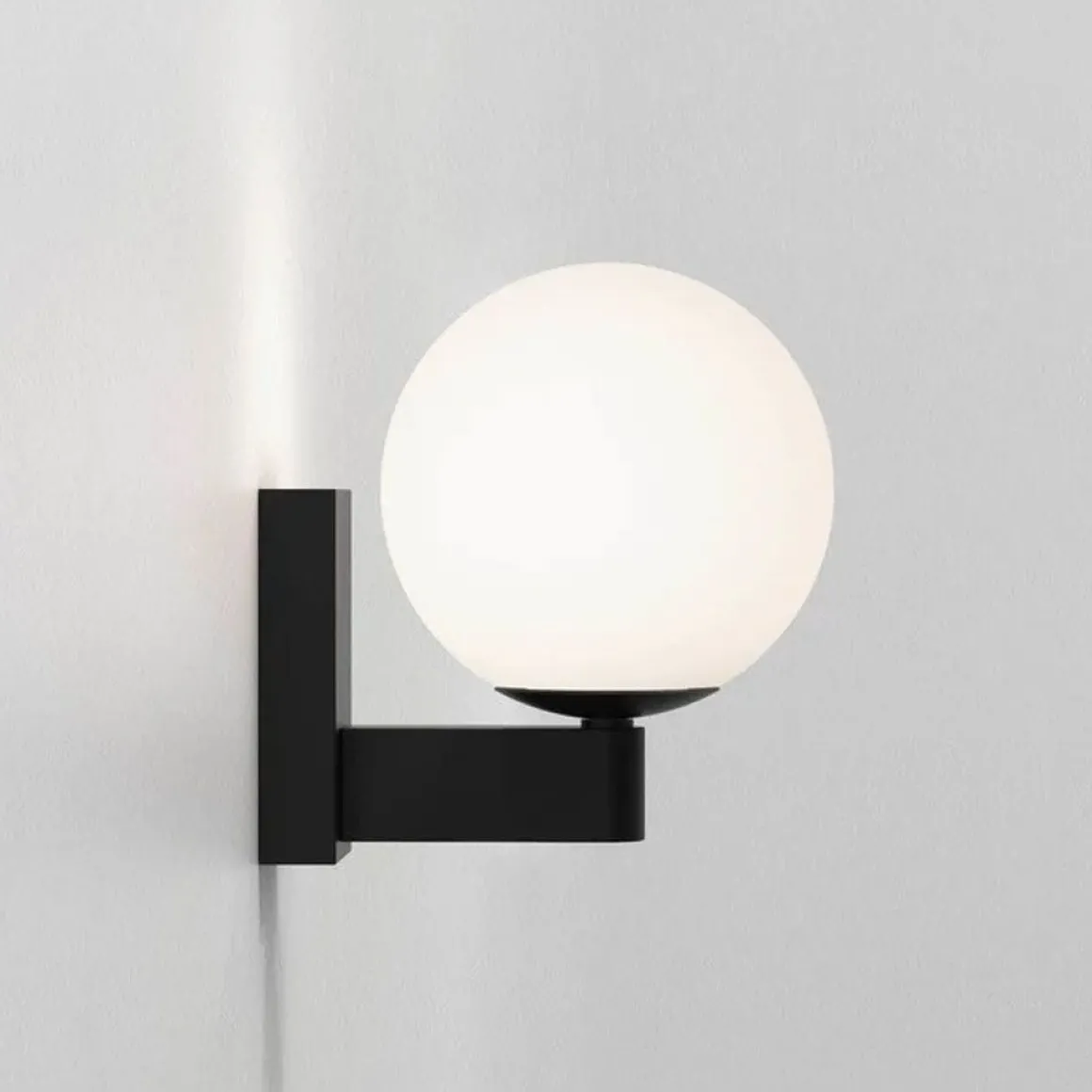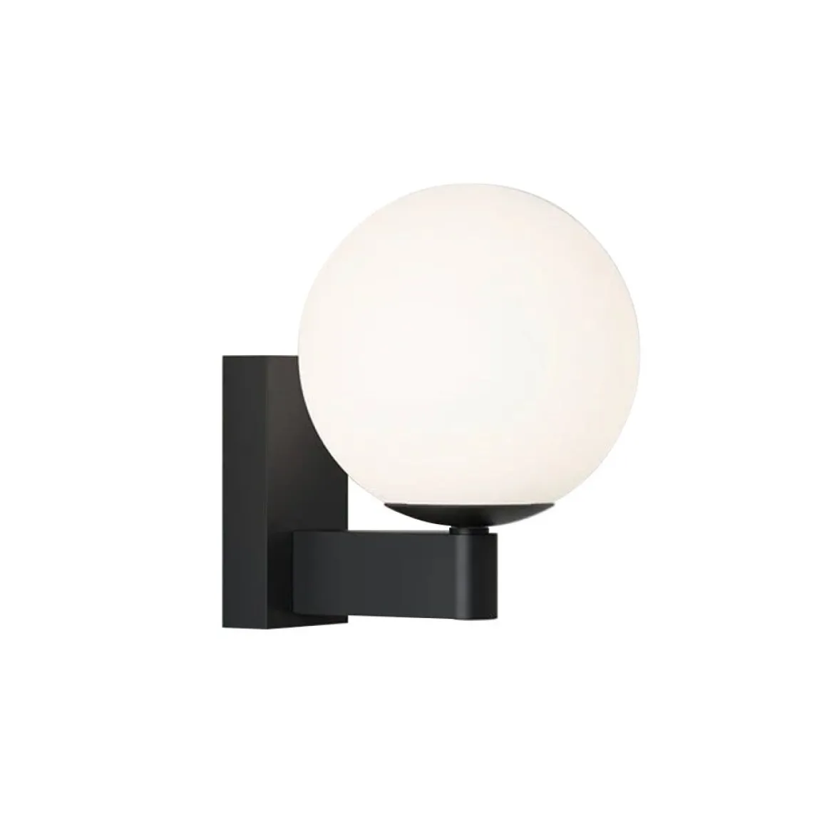 Luminaire fascinant noir mat, Sagara est doté d’un abat-jour en verre sphérique. On dirait qu’il lévite au-dessus de sa base en métal, plus structurée, en dessous.