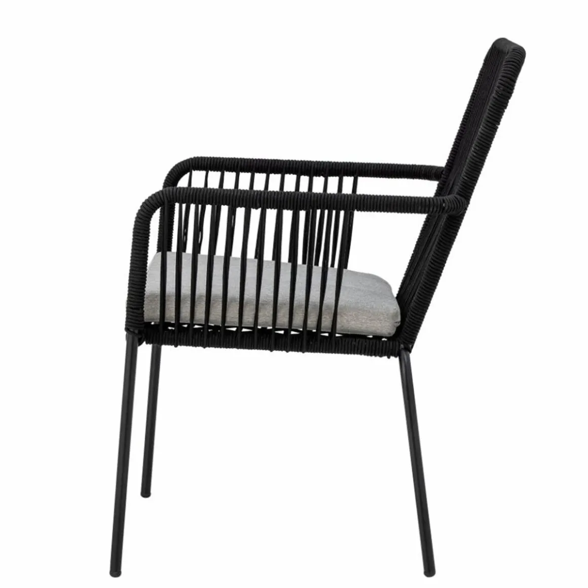 La Chaise de salle à manger Santino de Bloomingville est en métal noir revêtu de poudre avec une corde en polyester noir tissée à la main sur le cadre. La housse de coussin grise est faite en polyester et peut être lavée à 30 degrés. La chaise de jardin convient à tous les espaces extérieurs, mais en protégeant la chaise de la lumière directe du soleil, la couleur du tissu et la durabilité de la chaise seront prolongées. Profitez d’une chaise d’extérieur très confortable dans un design nordique classique.
