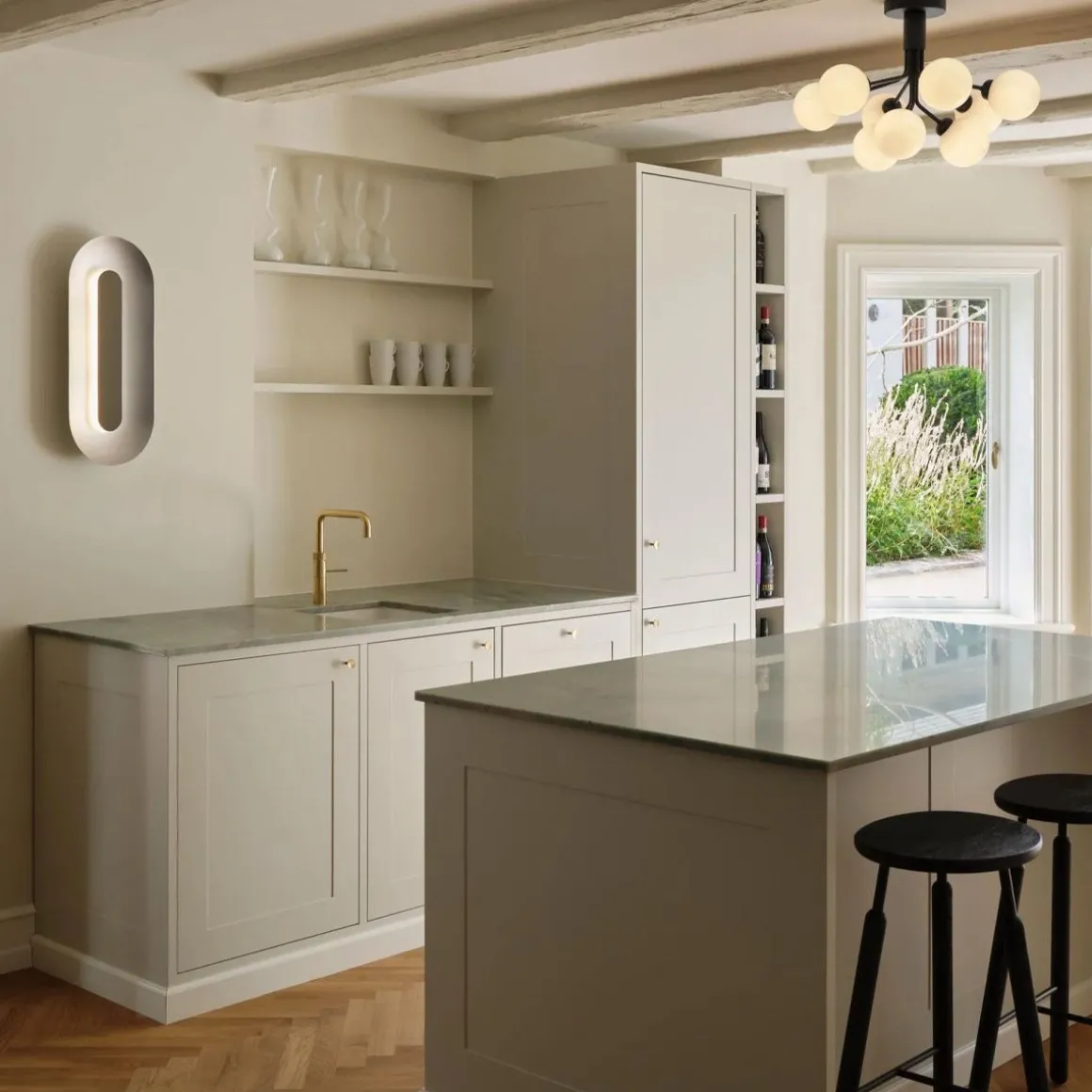 Sasi de la marque Nuura par Rick Tegelaar. Sasi Small est une applique murale décorative au design doux, aux couleurs harmonieuses et aux matériaux soigneusement sélectionnés. Elle se compose d’un cadre ovale en aluminium ou laiton et d’une forme plus petite à effet miroir. L’abat-jour poli dissimule le module LED intégré, diffusant et reflétant une lumière décorative. Placez l’applique Sasi près d’une petite console et ajoutez une touche sculpturale à votre décoration intérieure.