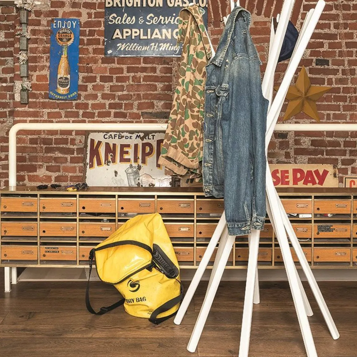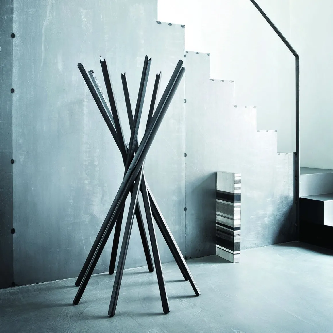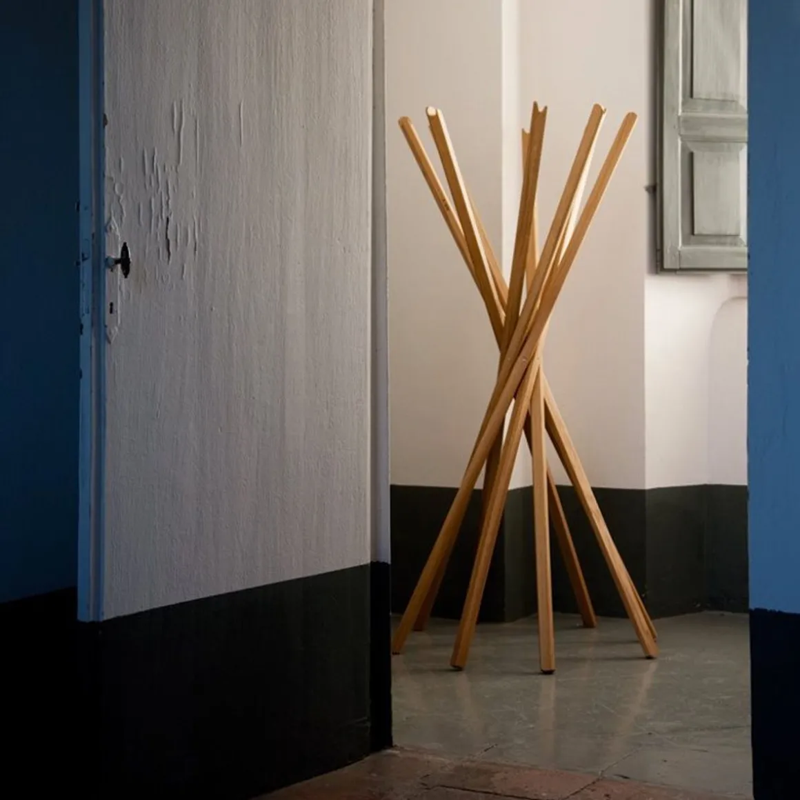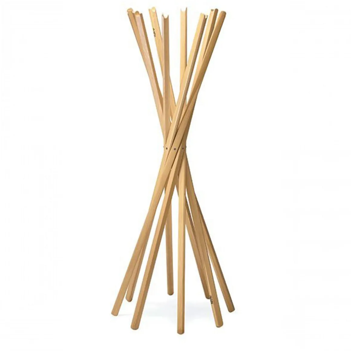 Sciangai est un porte manteaux pliant créé par De Pas, D’Urbino et Lomazzi pour Zanotta. Sciangai se décline en plusieurs coloris : blanc, rouvre naturel, hêtre naturel, noir. La beauté du porte manteaux se trouve dans l’effet pliant. Les bouts de bois s’enchevetrent parfaitement donnant une forme splendide. Effet assuré !