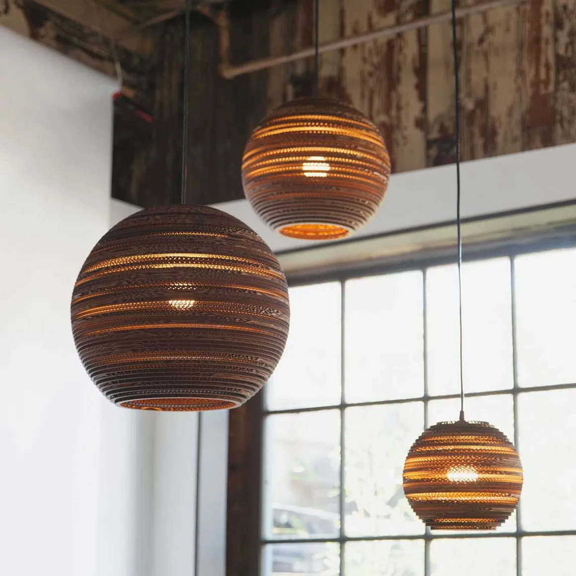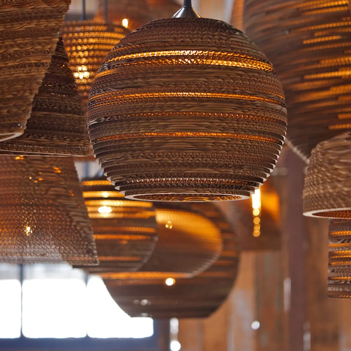 Fabriqué à la main à partir de carton recyclé, le produit phare de Graypants, Scraplights, fournit un éclairage chaleureux, intime et fonctionnel pour toute occasion ou espace. Robuste et élégant, ils est découpé avec précision au laser et assemblés à la main à l’aide d’un adhésif non toxique, et tous les Scraplights sont traités avec un produit ignifuge non toxique.