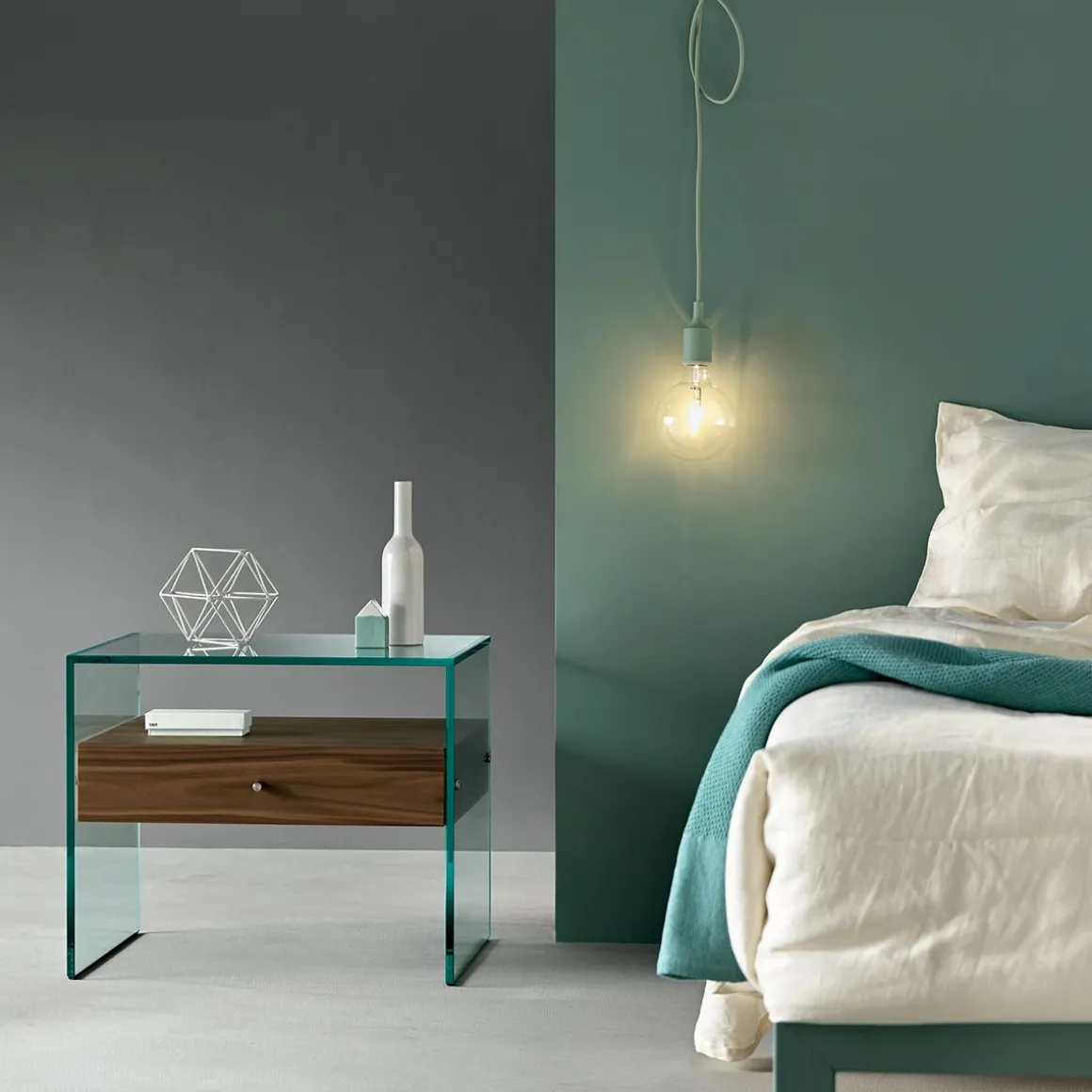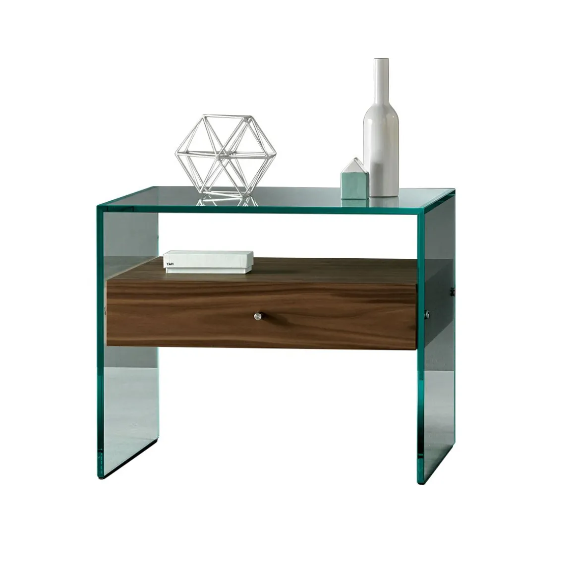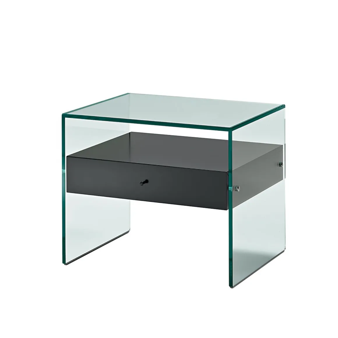 La table de chevet Secret est une table en verre épurée et tendance. Le verre est un matériau fragile et résistant, solide et léger, beau et fonctionnel. Il est l’un des plus anciens matériaux, l’un des plus fascinants que l’histoire de l’humanité ait connu. Au fil des ans, il a su garder tout son charme et ses qualités extraordinairement éclectiques. Les ampoules de Mésopotamie, les récipients romains, le verre byzantin, le verre de Venise et de Bohême et l’architecture de Gropius et de Le Corbusier sont quelques-unes des métamorphoses les plus admirables de ce matériau unique. Traditionnellement le verre a été travaillé à l’aide d’une série complexe d’opérations : la cuisson jusqu’à 1500 degrés puis le refroidissement pour le formage, le moulage, le laminage et les étapes d’étirage. Ensuite, grâce à un processus, toutes ces étapes ont été rassemblées en un seul processus automatisé qui pourrait produire un nombre infini de feuilles de verre d’épaisseur et de longueur variable. Les résultats des premières expériences de cette nouvelle technique se distinguent comme une petite révolution copernicienne. C’est ainsi que le savoir-faire de Tonelli Design a débuté. Idéale pour apporter une touche moderne et chic à votre intérieur, la table Secret, toute en verre, possède un tiroir en bois. Différents types de bois sont disponibles pour votre tiroir.