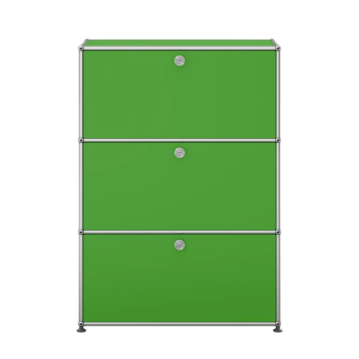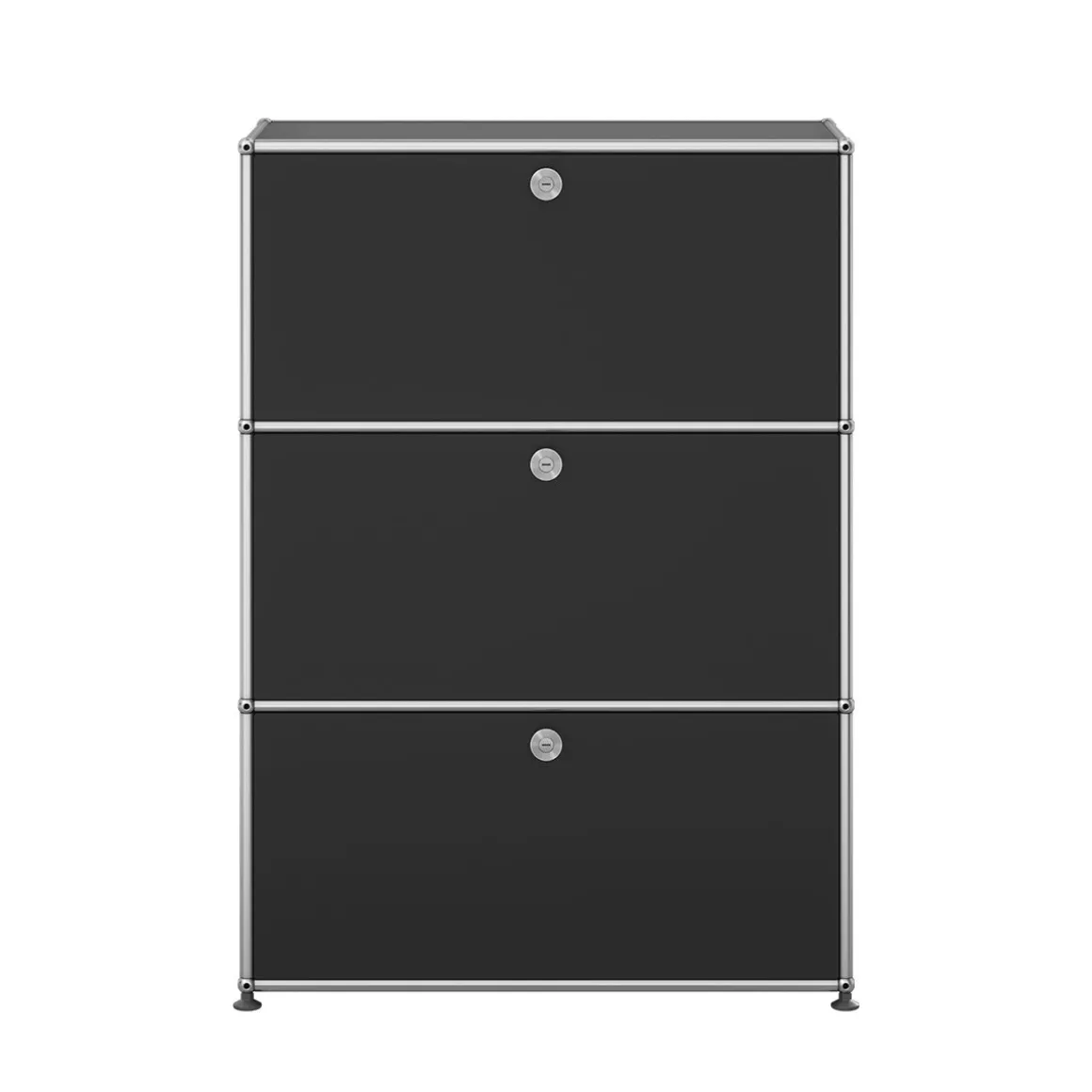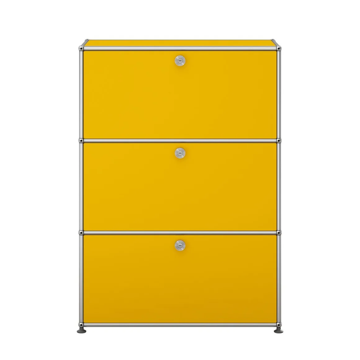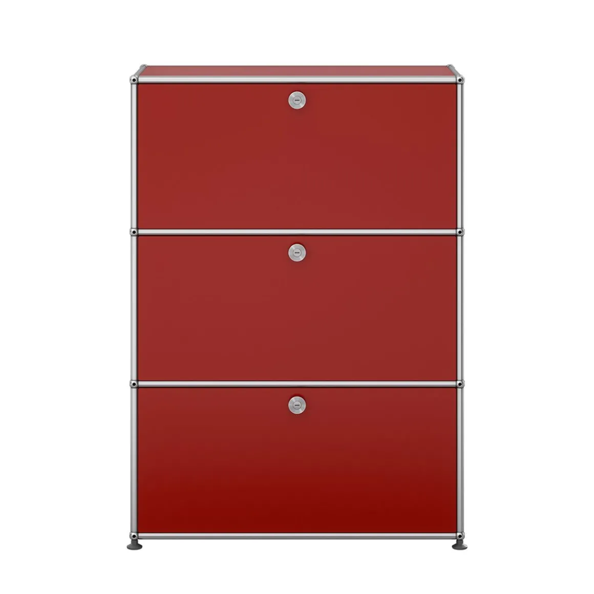 Meuble de rangement composé de 3 modules équipés de portes abattantes (poignées sans serrure).