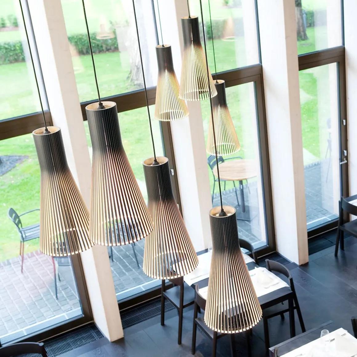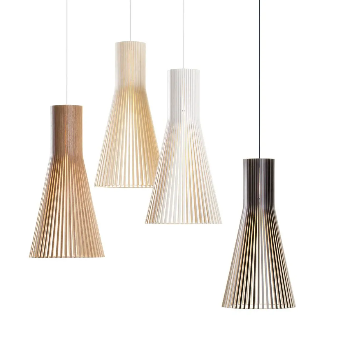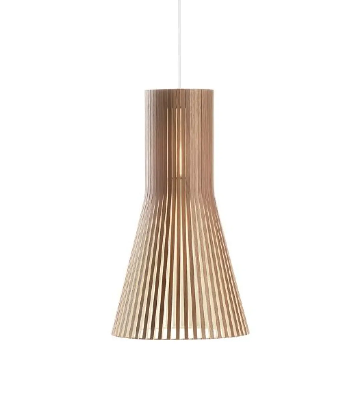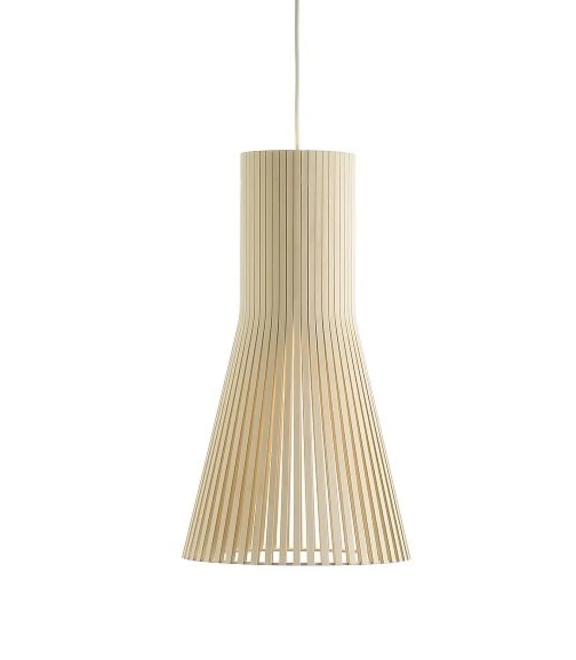 La suspension Secto 4200 de chez Secto Design, avec son style nordique, est entièrement fabriquée à la main par des artisans hautement qualifiés et certifiés de Finlande. Les lattes des abat-jours sont reliées par des anneaux réalisés en « aircraft plywood », matériau utilisé en aéronautique car hautement résistant à la chaleur. Cette suspension dispose d’un câble électrique de 1.5 m de longueur (câble plus long sur demande). Secto Design a une démarche citoyenne sur la réduction de son empreinte écologique en s’approvisionnant localement en bois et en recyclant ses déchets comme bois de chauffage, en jouets pour les crèches ou pour les écoles de menuiserie. Très tendance, cette suspension Secto affiche des finitions élégantes et minimalistes. Grâce à sa forme conique, très raffinée, cette suspension devient un véritable élément de décoration.