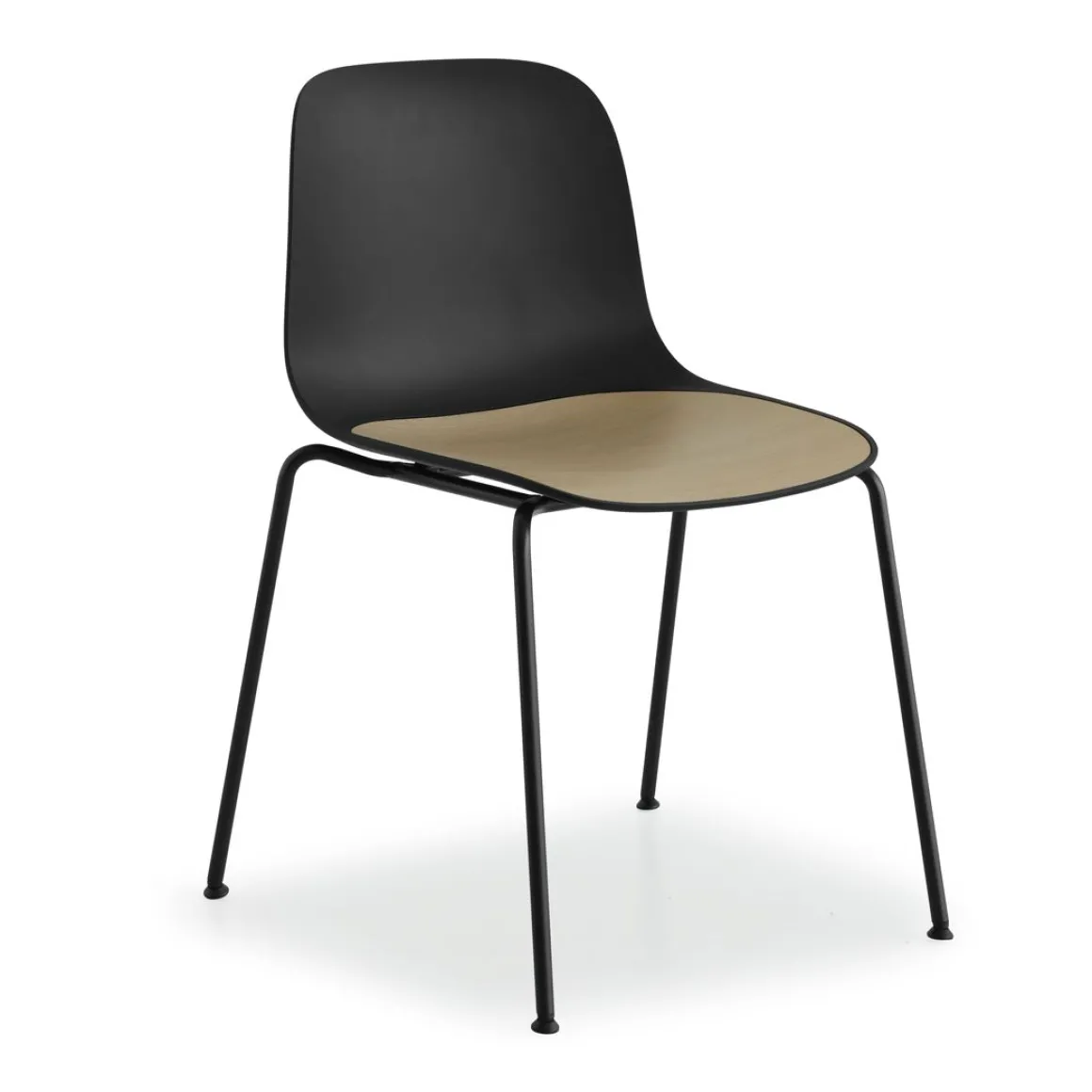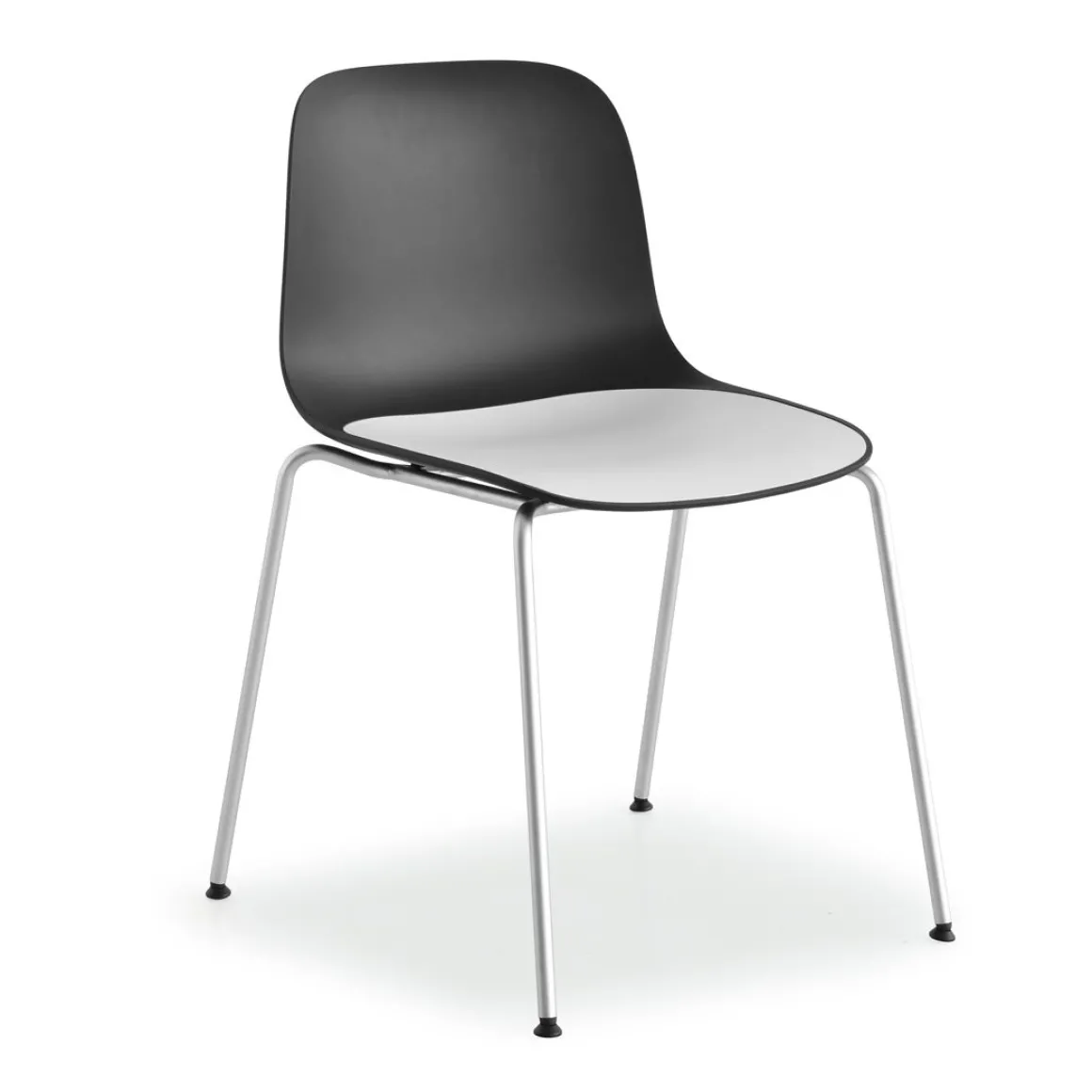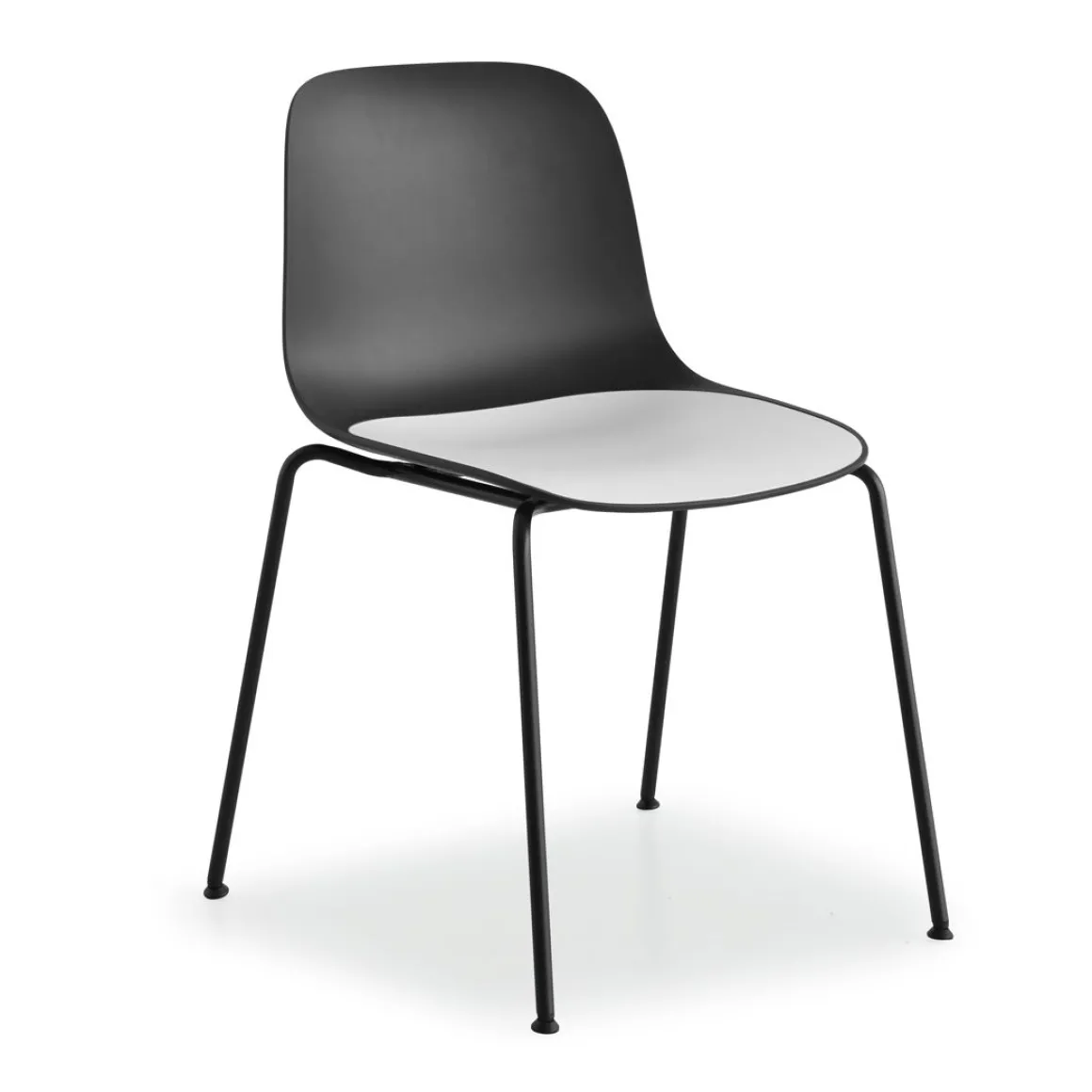 Matériaux : coque en polypropylèe avec coussin d’assise intégrée en polypropylène ou bois, 4 pieds en acier
