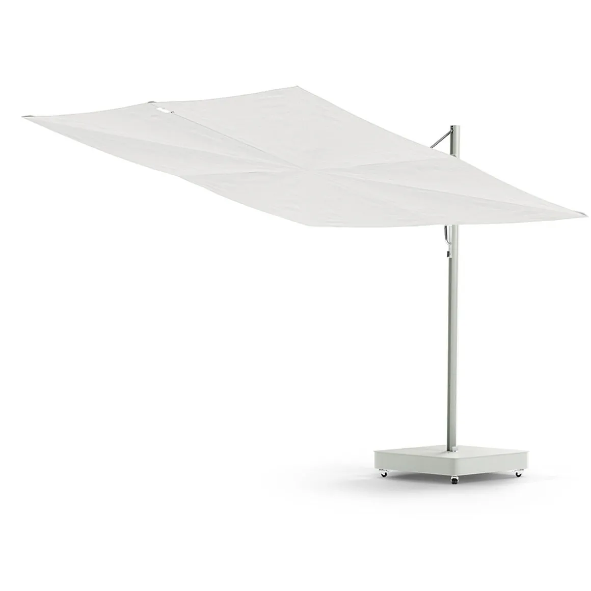 Sensu de Extremis par Dirk Wynants. Parasol de jardin rotatif raffiné allie la sérénité d’un design plat à la fonctionnalité d’un système d’éventail manuel. Contrairement aux parasols traditionnels à mât central, Sensu ne prend pas de place sur et sous votre table, ouvert comme fermé. Tournez et/ou inclinez son abat-jour pour suivre le soleil tout au long de la journée.