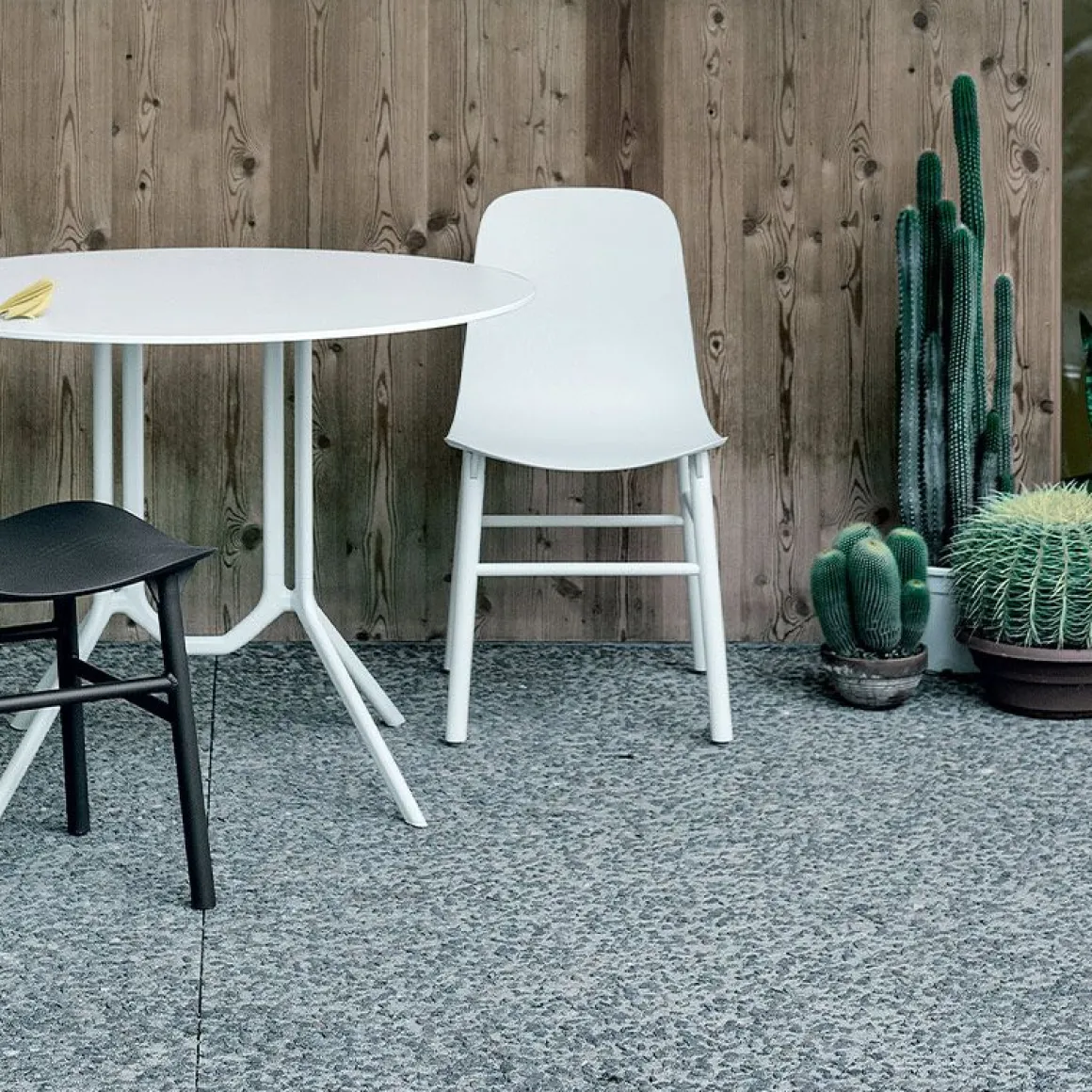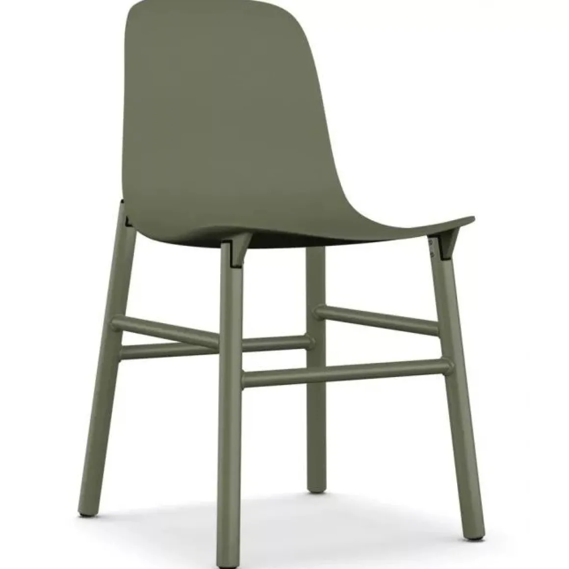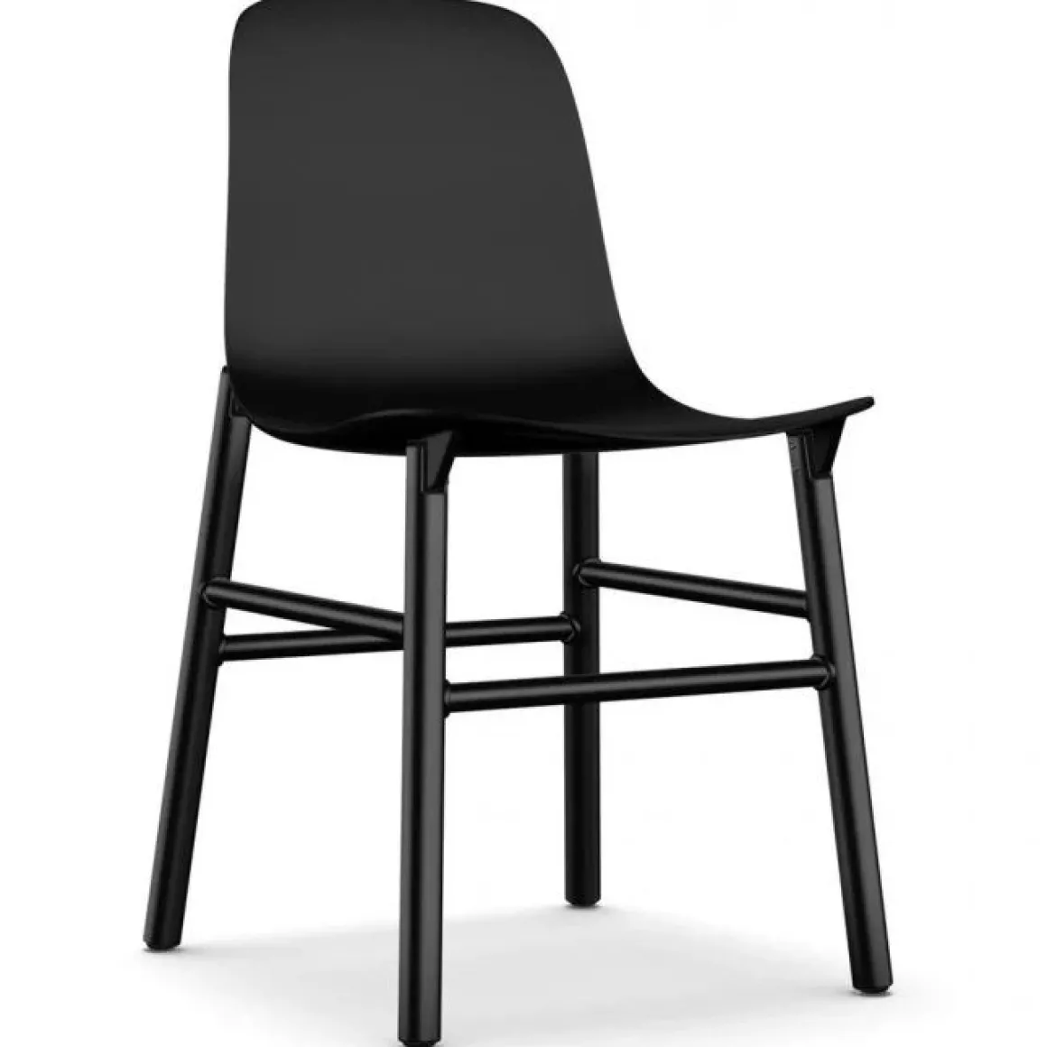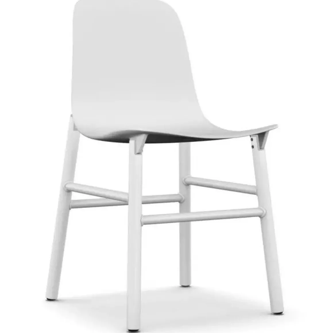 Sharky – en version chaise ou tabouret avec dossier haut ou bas – existe avec pies en bois ou en aluminium laqué avec soudures apparentes.