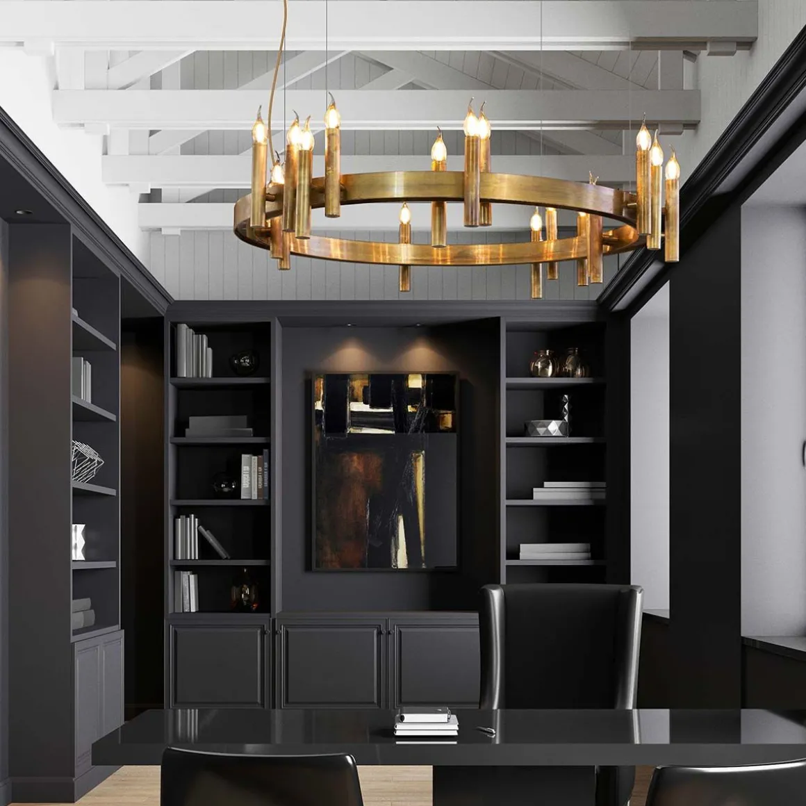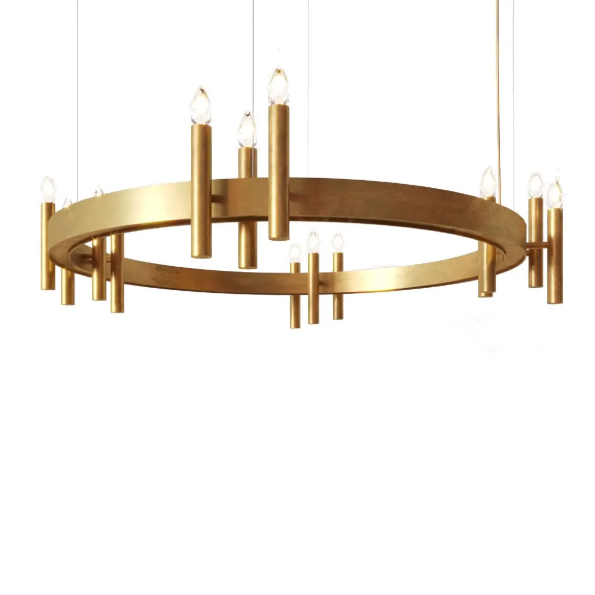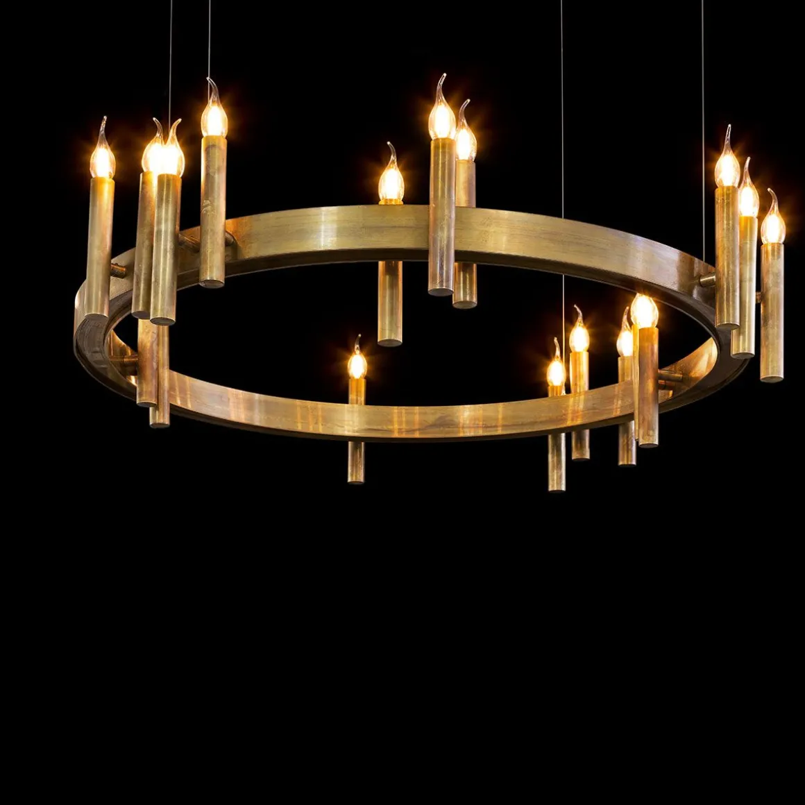 Le cercle de bougies de la suspension permet d’éclairer gracieusement un espace ou d’en faire une composition.
