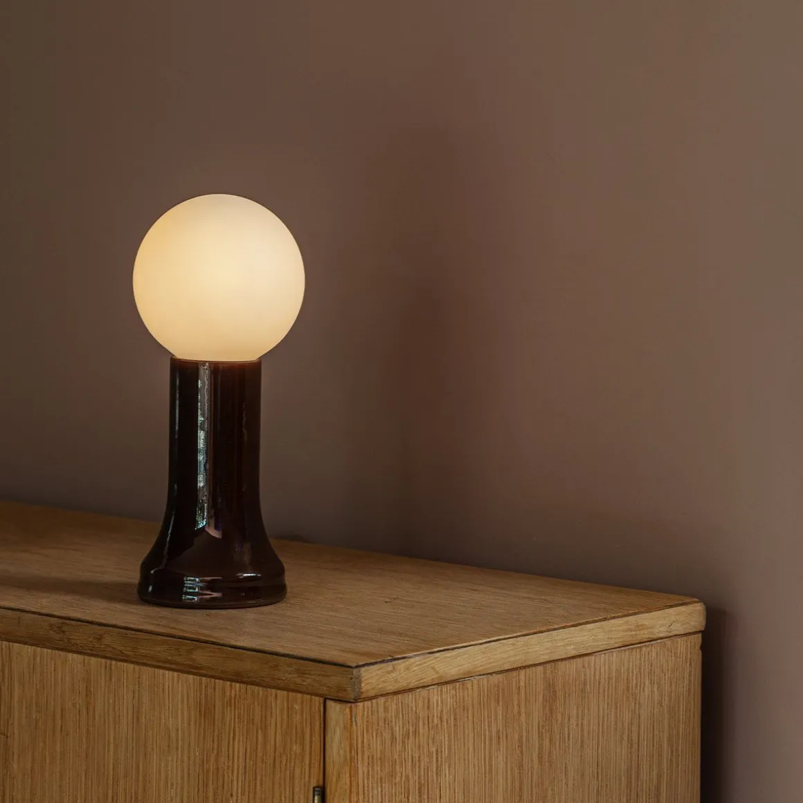 Soufflé à la bouche à partir de verre recyclé et faisant référence à la force de l’ampoule avant qu’elle ne soit scellée, Shore est associé à une ampoule sphérique blanc mat et un variateur en ligne, offrant une technologie Dim to Warm inégalée.