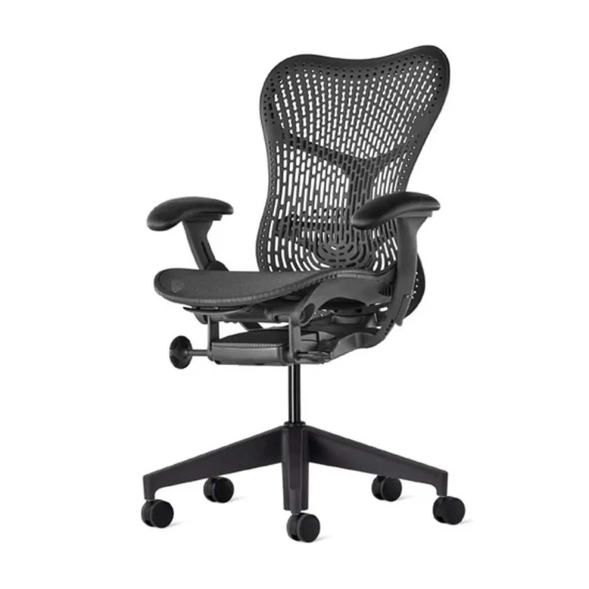 Tous les sièges et sièges hauts de travail Mirra 2 offrent deux options de dossier : le dossier TriFlex ou le dossier Butterfly, ultraréactif. En format siège haut, le Mirra 2 convient à tous les environnements de travail où des collaborateurs se côtoient en position assise ou debout tout en restant au même niveau. Les méthodes de travail évoluant, en nous imposant de faire preuve de toujours plus de dynamisme et de passer instantanément d’un mode de travail individuel à une approche collaborative, nous devons disposer d’outils conçus pour accompagner cette flexibilité. Pour répondre à cet impératif, les designers de Studio 7.5 ont voulu créer un siège haute performance, qui garantit un soutien adapté aux personnes dont le corps est constamment en mouvement dans le cadre de leur travail. Mirra 2 fait corps avec la personne et accompagne le moindre mouvement. Lorsque vous vous asseyez, l’assise et le dossier épousent instantanément votre corps. Grâce à ses surfaces dynamiques, qui épousent le moindre de vos mouvements et à ses réglages simples et intuitifs, qui lui permettent de s’adapter parfaitement à votre position, le design sophistiqué de Mirra 2 offre un équilibre parfait entre confort immédiat et ergonomie personnalisée. Le soutien des mouvements en position assise commence par un siège flexible, mais robuste, qui vous permet de bouger librement et naturellement. La boucle lombaire du siège Mirra 2 offre une flexion de torsion qui vous permet de vous étirer et de vous pencher latéralement, tandis que la bascule Harmonic 2 procure une sensation douce et stable pendant que vous inclinez votre siège.