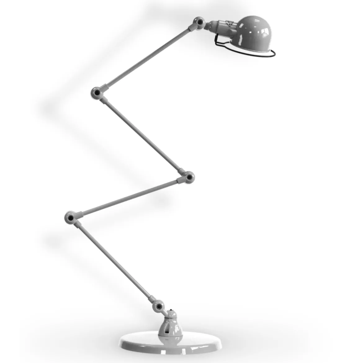 SIGNAL SI433 est une lampe articulée créée par Jean Louis Domecq pour Jieldé. Cette lampe qui séduit par sa forme et sa capacité à éclairer l’espace. Elle est idéale en liseuse près d’un canapé ou dans un bureau. Chaque lampe est faite main en petite serie, et numérotée. On apprécie particulièrement le côté industriel de la lampe qui a été conservé depuis les années cinquante.