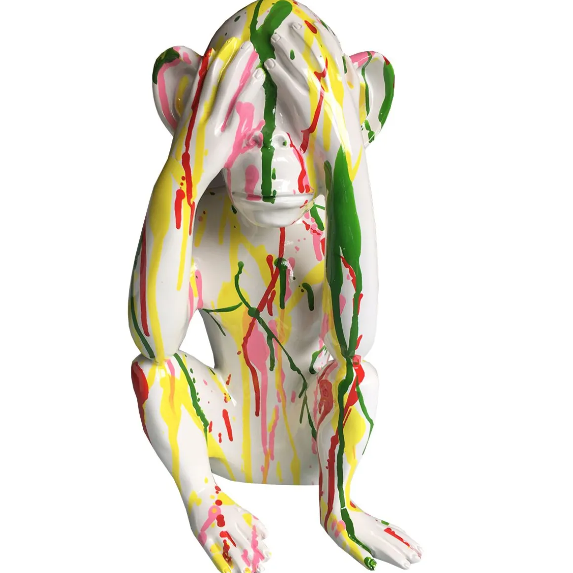 Statue singe ne vois pas, qui fait partie de la serie des trois sages, ne vois pas, n’entend pas, ne parle pas.