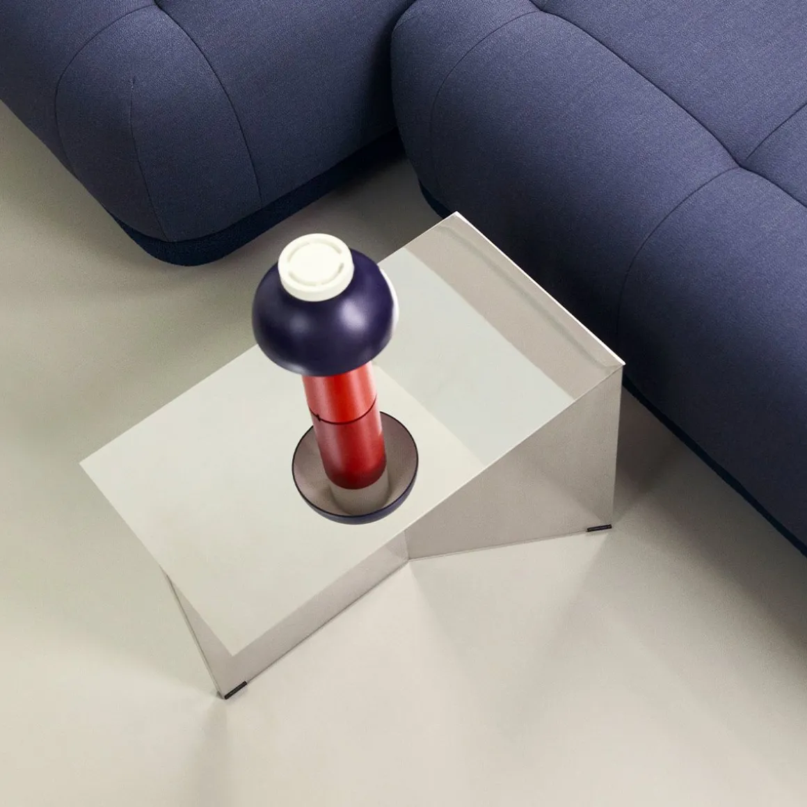 Slit Table rectangle miroir de Hay. La table Slit est une simple table métallique disponible en trois formes : ronde, rectangulaire et hexagonale. La table Slit est le papier origami traduit dans l’univers du métal, baptisé ainsi d’après la fente qui se dégage par le pli de la structrure sous le plateau de la table. Slit est disponible en cinq couleurs contemporaines ainsi qu’une finition laiton et une autre miroir dans un total de 14 combinaisons différentes (nombre de coloris variables selon les formes). Utilisez-les en paires ou en groupe ou bien les uns sur les autres.