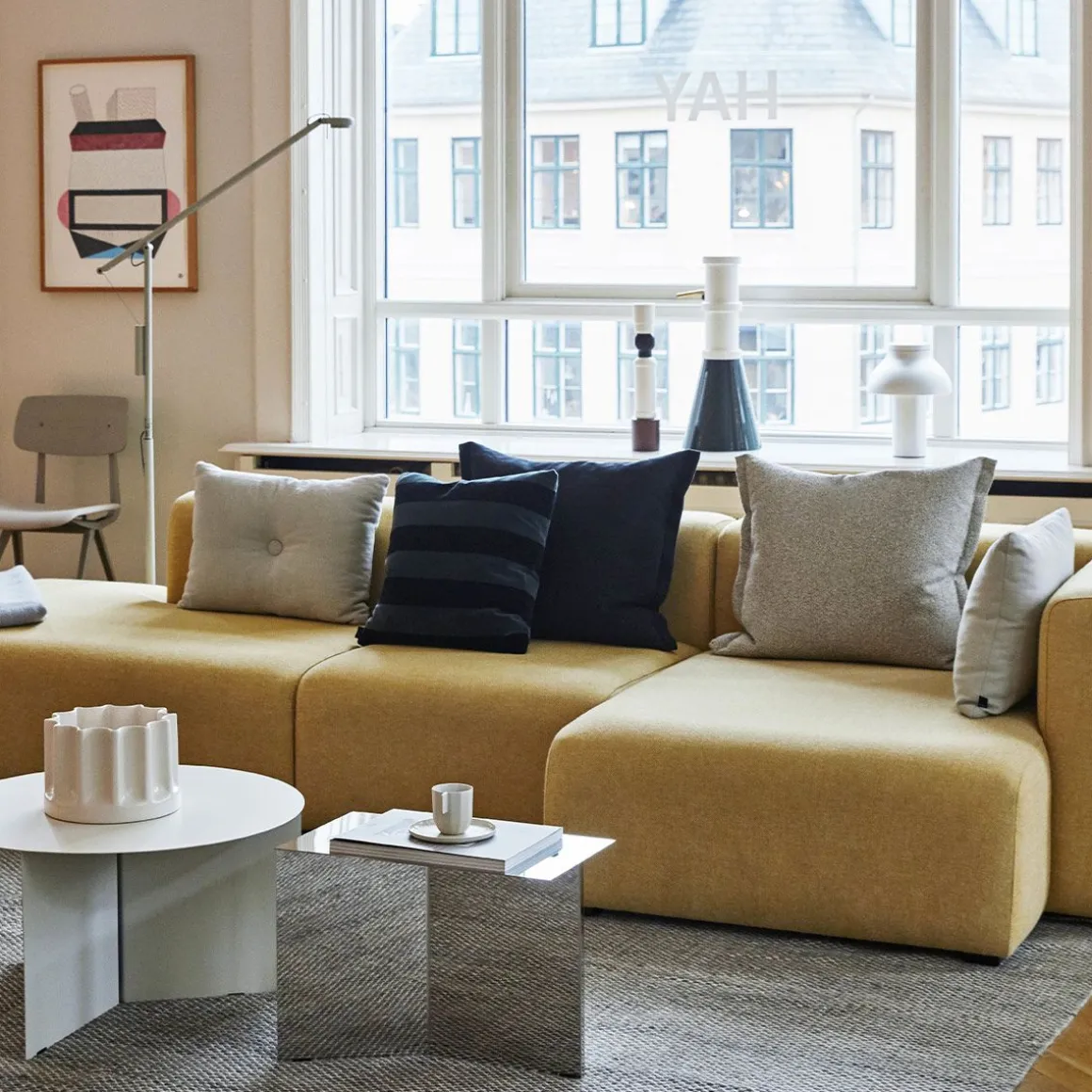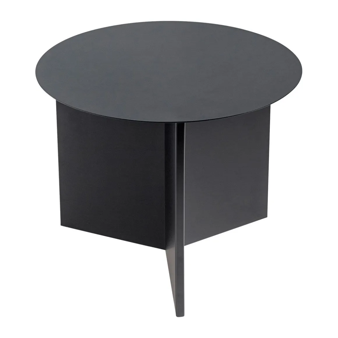Slit Table Ronde de Hay. La table Slit est une simple table métallique disponible en trois formes : ronde, rectangulaire et hexagonale. La table Slit est le papier origami traduit dans l’univers du métal, baptisé ainsi d’après la fente qui se dégage par le pli de la structrure sous le plateau de la table. Slit est disponible en cinq couleurs contemporaines ainsi qu’une finition laiton et une autre miroir dans un total de 14 combinaisons différentes (nombre de coloris variables selon les formes). Utilisez-les en paires ou en groupe ou bien les uns sur les autres.