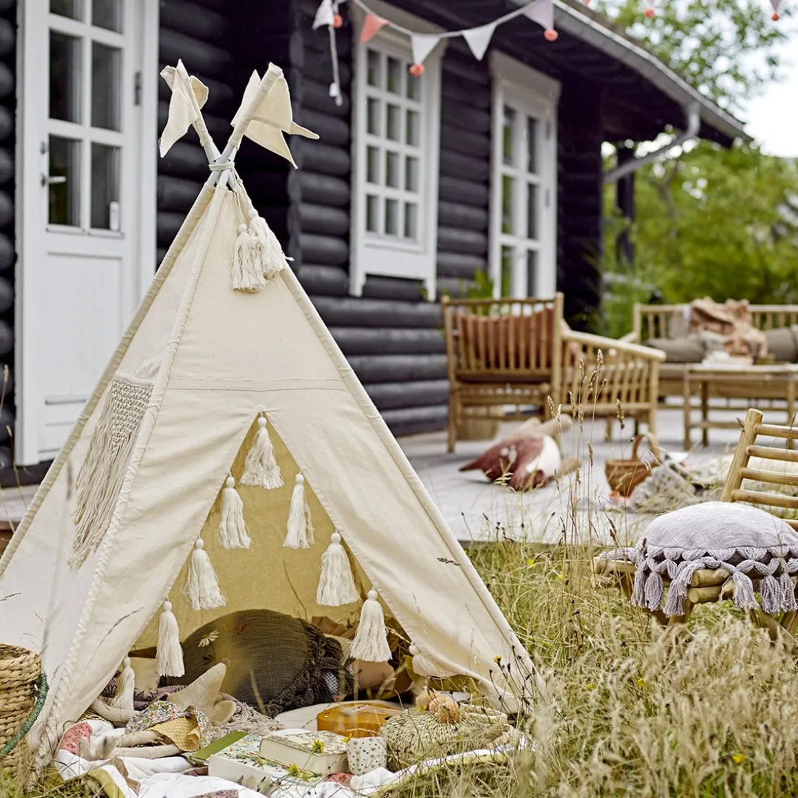 Coloris : bambou naturel et coussin rayé beige