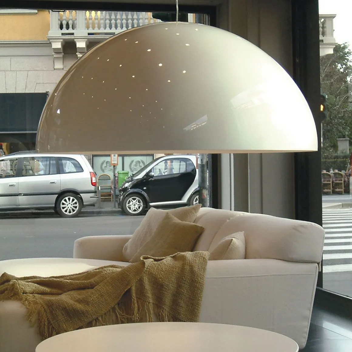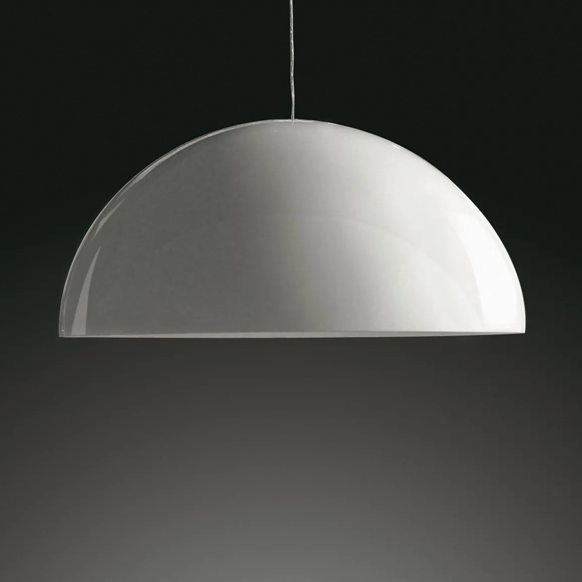 L’histoire de Sonora est l’histoire d’une forme géométriquement pure, l’hémisphère, obessionnellement recherché par Magistretti pendant près de trente ans est disponible dans de nombreux matériaux et tailles. Créée en 1976 grâce à l’aluminium tourné, il mesurait déjà 100 cm. En 1990, il été offert dans un verre soufflé gravé et en 2003 en méthacrylate. Trois ans plus tard, cette dernière variante mesurait 133 cm, agissant comme une démonstration d’une technologie exceptionnelle. Sonora, maladroitement imité dans le monde entier, est certainement l’une des lampes les plus populaires conçues par Magistretti, qui a reconnu en elle la capacité à éclairer, et à caractériser, tout un environnement particulier : une sorte de volume qui est contenu dans un autre volume qui est votre pièce à vivre.