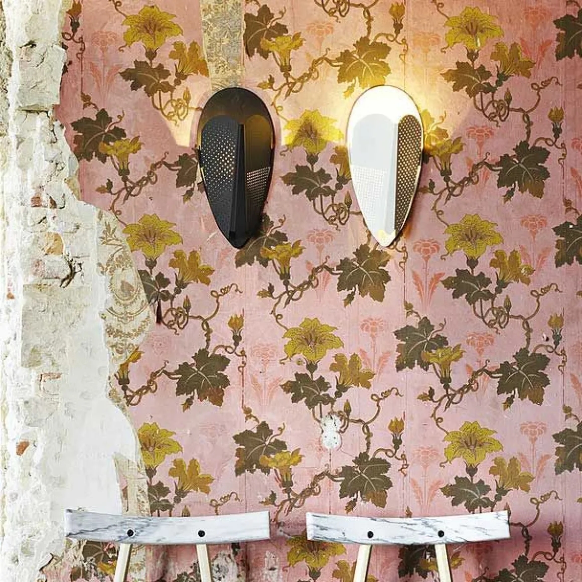 Sorcier est une applique murale inspirée des masques rituels Ngil de la tribu Fang au Gabon. La lumière se diffuse à travers les perforations dans le masque et brille vers le haut d’une manière graphique et douce. Il change de personnalité en fonction de la combinaison de couleurs, de textures et de motifs perforés, qui varient dans chacunes des version. Le designer a passé beaucoup de temps en Afrique centrale avec les Fang qui sont toujours le groupe ethnique principal en Guinée et répartis à travers le Gabon et le Cameroun. Elle puise son inspiration dans les objets rituels et la forte identité graphique avant de la combiner à la fabrication moderne pour créer cette collection. Plus qu’une lumière, Sorcier est une sculpture.