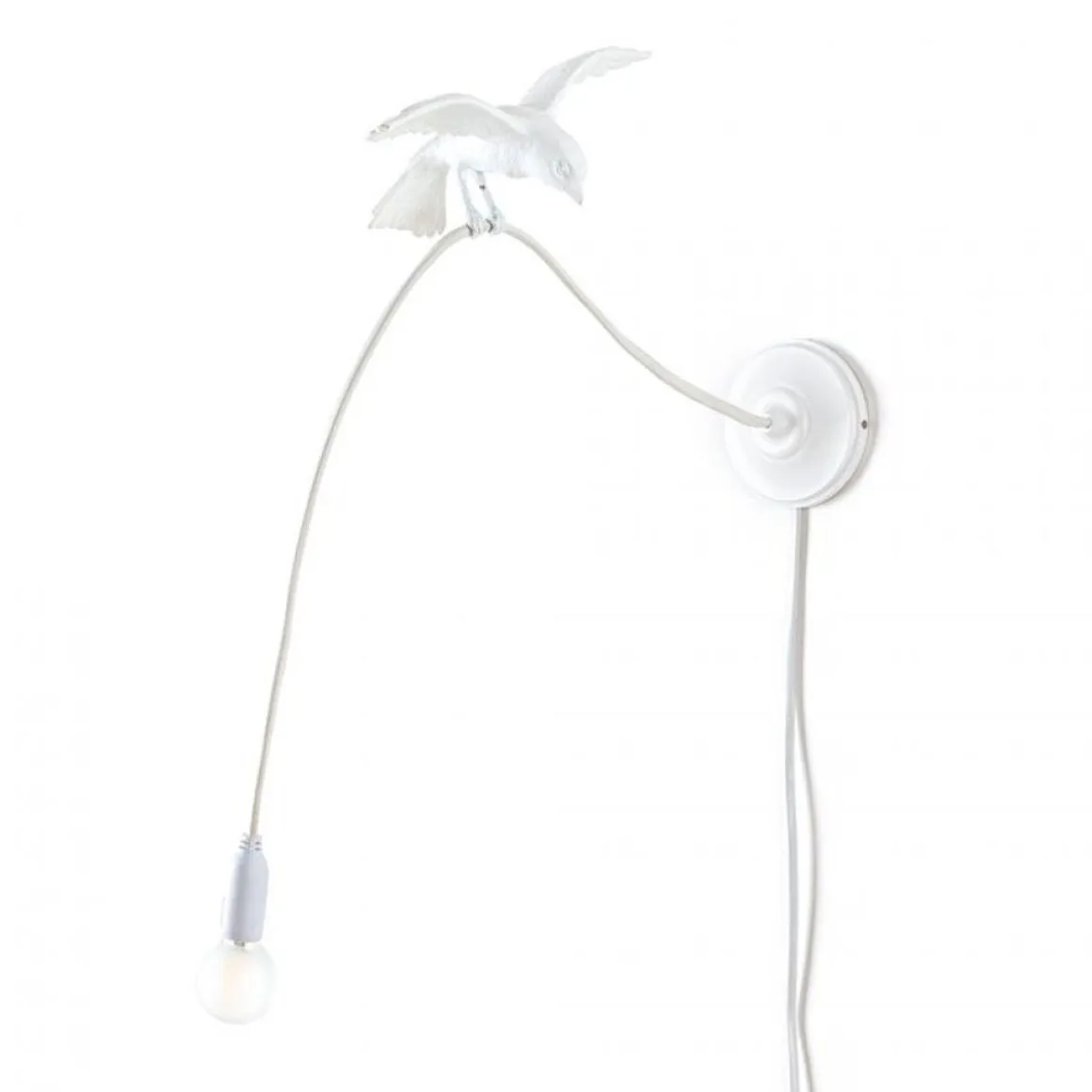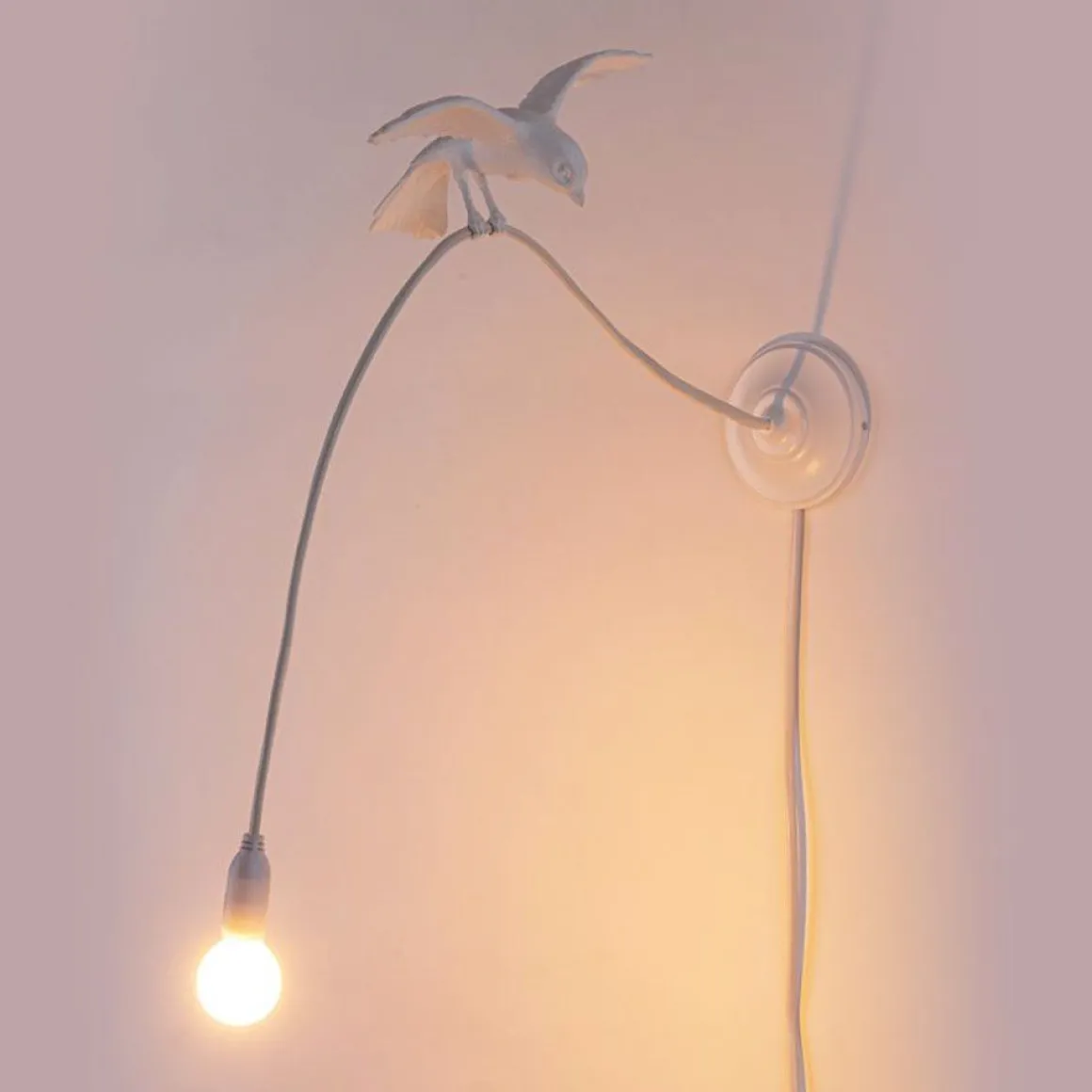 On voir la vitalité de ces oiseaux qui apportent avec animation la lumière. Le designer a voulu recréer ce moment où l’on observe un petit oiseau secrètement occupé et le cordon spécial de ses lampes recrée la magie typique de ces petits oiseaux.