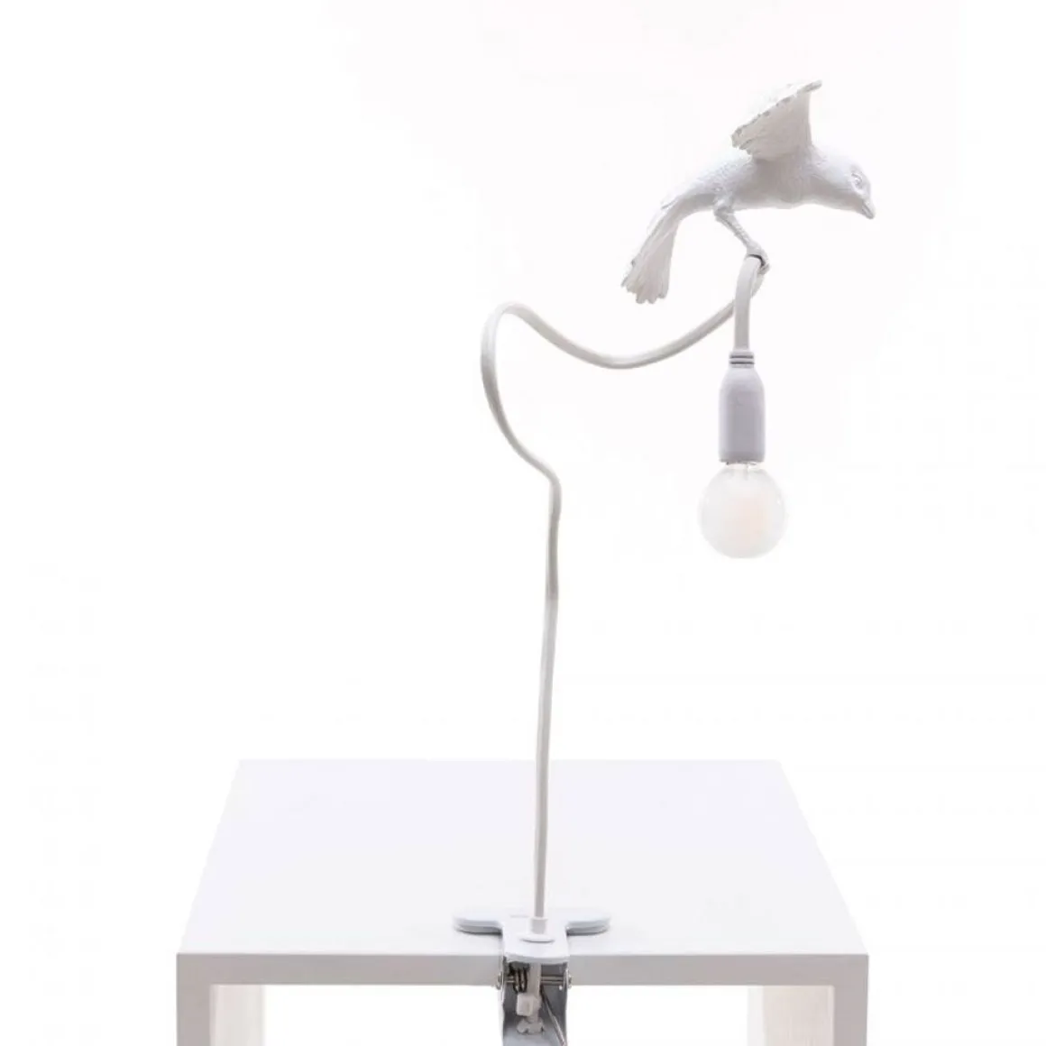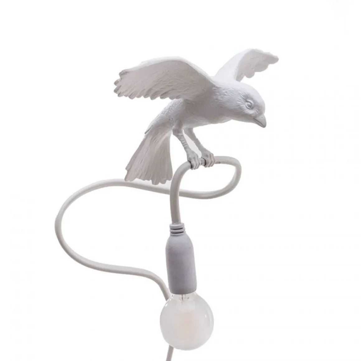 On voit la vitalité de ces oiseaux qui apportent avec animation la lumière. Le designer a voulu recréer ce moment où l’on observe un petit oiseau secrètement occupé et le cordon spécial de ces lampes recrée la magie typique de ces petits oiseaux.