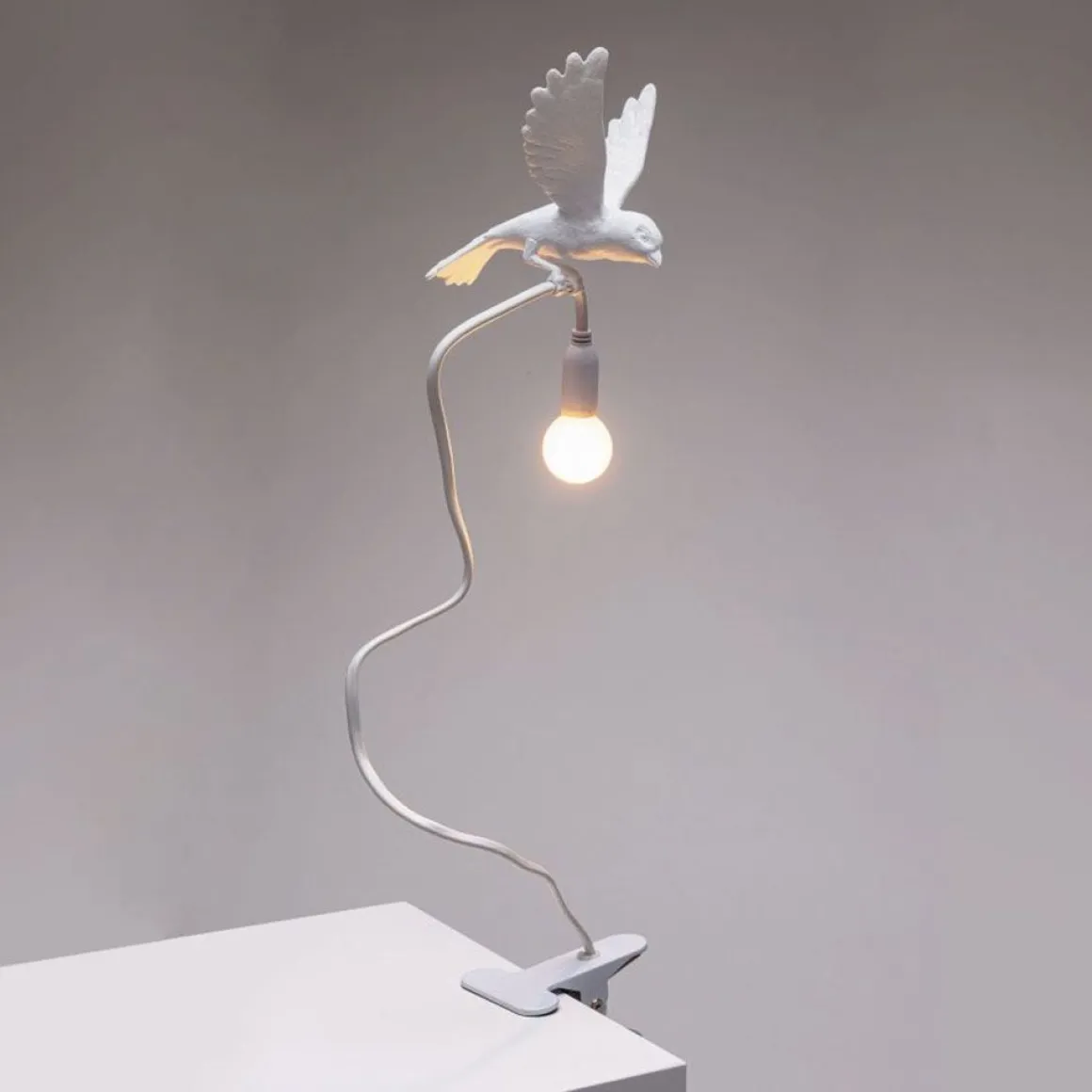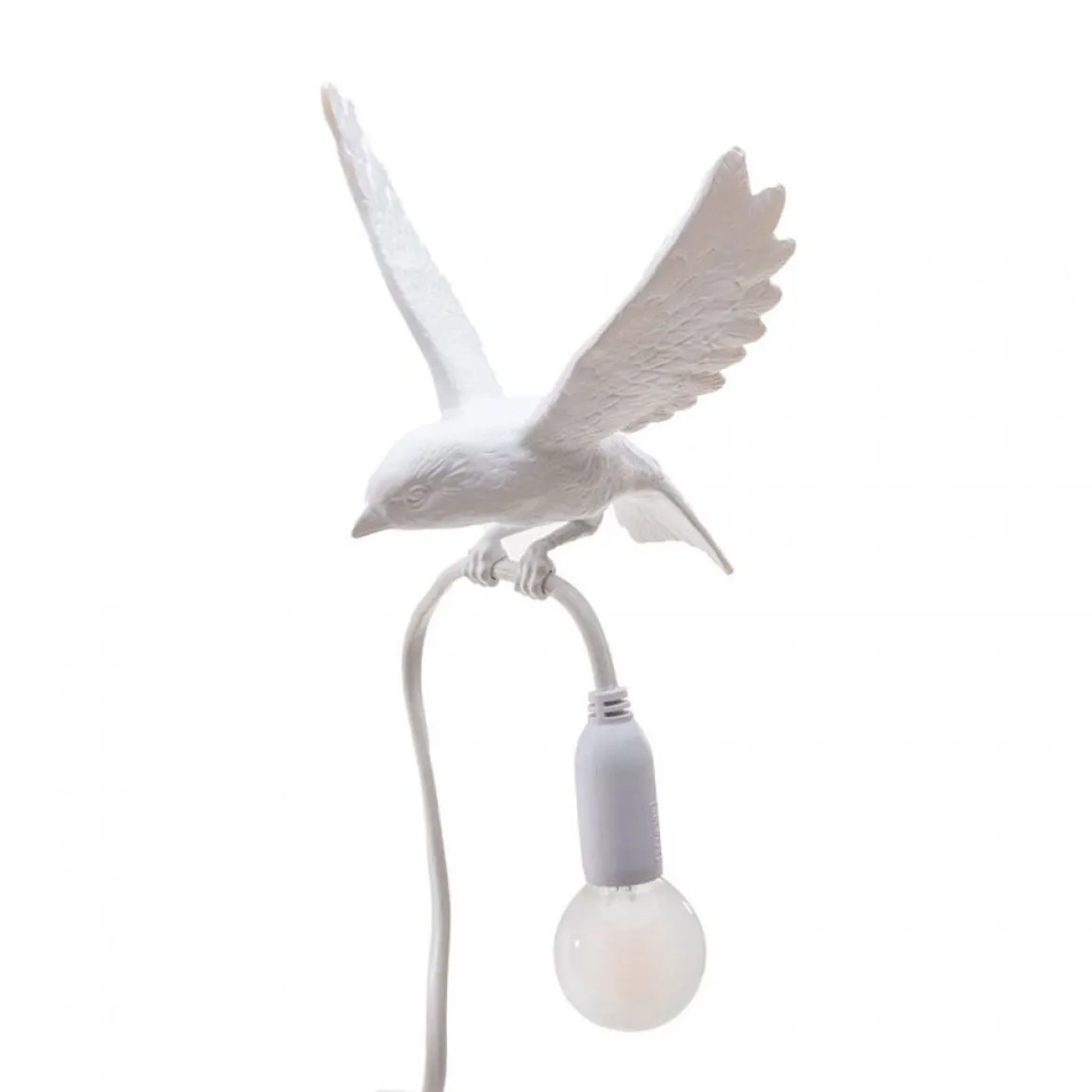On voit la vitalité de ces oiseaux qui apportent avec animation la lumière. Le designer a voulu recréer ce moment où l’on observe un petit oiseau secrètement occupé et le cordon spécial de ces lampes recrée la magie typique de ces petits oiseaux.