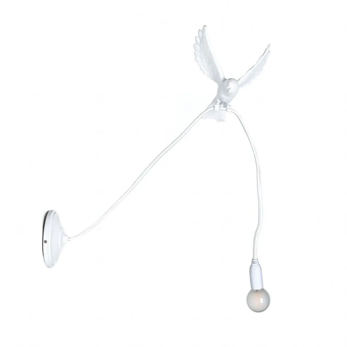 On voir la vitalité de ces oiseaux qui apportent avec animation la lumière. Le designer a voulu recréer ce moment où l’on observe un petit oiseau secrètement occupé et le cordon spécial de ses lampes recrée la magie typique de ces petits oiseaux.
