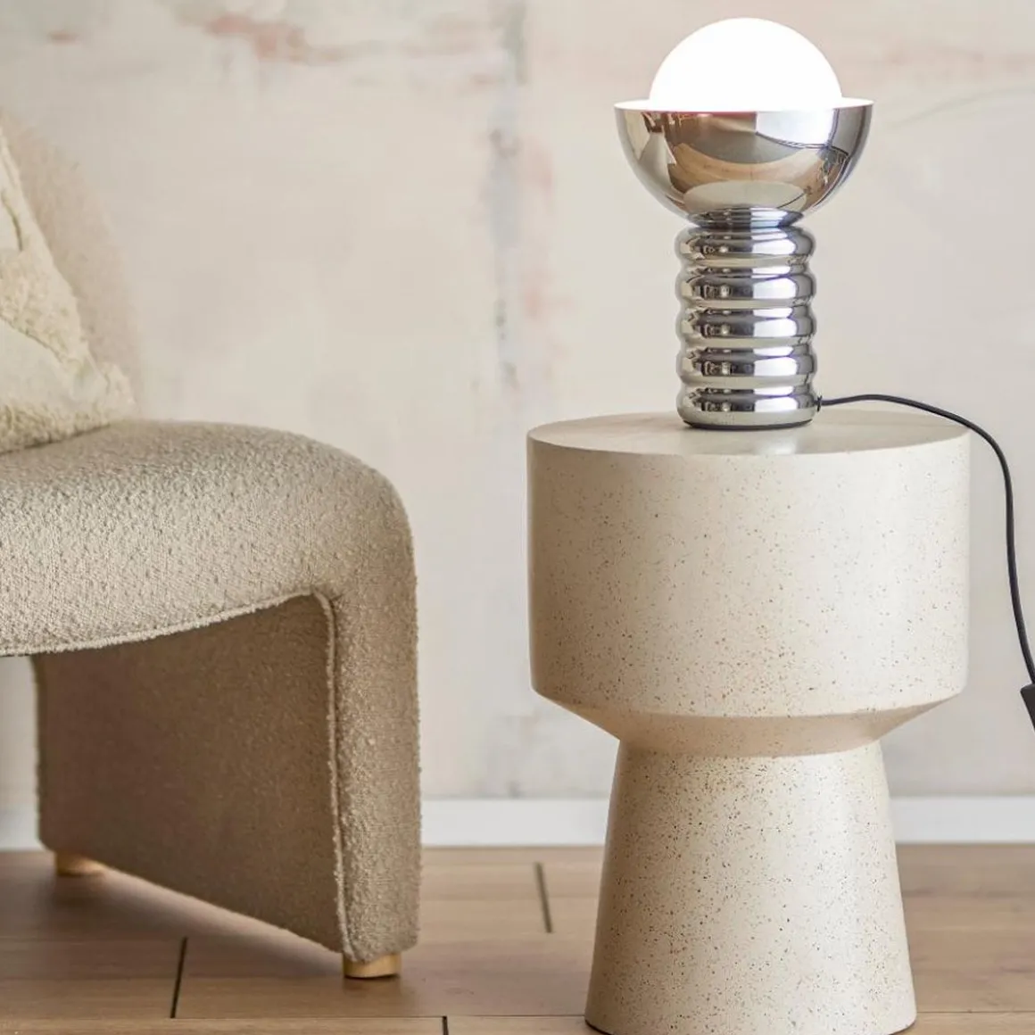 Spike de Bloomingville. La Lampe de table Spike de Bloomingville est une lampe décorative avec un design à bulles et une finition chromée brillante. Cette lampe est non seulement un luminaire de table accrocheur, mais aussi un objet décoratif qui ajoute une touche élégante à tout intérieur. Elle est parfaite pour être placée sur un rebord de fenêtre, une table de chevet ou un bureau.