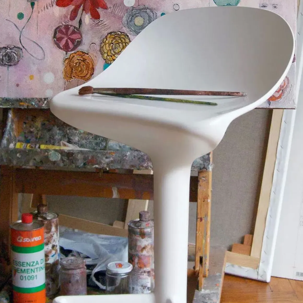 Un tabouret original par sa forme, son look et sa fonction. L’innovation de Spoon consiste essentiellement en la jonction de l’assise et de la structure centrale par une courbe spécialement renforcée pour assurer flexibilité et confort. De plus, grâce à une solution sophistiquée de conception, la pompe à gaz régulant la hauteur de 56 à 76 cm est parfaitement intégrée à l’intérieur du pied, de même que la poignée réglant le mécanisme est parfaitement intégrée à l’intérieur de l’assise. Spoon s’adapte à tout type d’intérieur : comptoirs de cuisine, bar, restaurants à la mode et au design d’avant-garde.