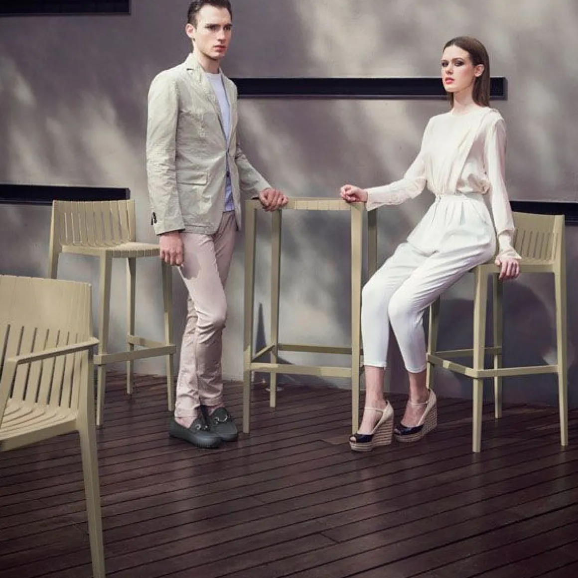 Les clôtures en bois blanc qui bordent la plage, les petites bandes qui se suivent, dans leur géométrie parfaite. C’est cette image qui a inspiré la collection Spritz, qui est composée des détails volés à cette inspiration. Chaise, fauteuil, tabouret et table haute: parfait pour tous les besoins, la collection Spritz s’adapte parfaitement à tout contexte, hospitalité et accueil. Ce n’est pas un hasard si Spritz, la collection créée par Archirivolto pour Vondom, incarne au nom l’idée de la fraîcheur et de la pureté des formes. Des formes rigoureuses qui relient la maison et le monde, avec un kaléidoscope de variations et de nuances: ce mélange entre la linéarité du style nord-européen et la chaleur typique de la Méditerranée crée un dialogue entre l’intérieur et l’extérieur.