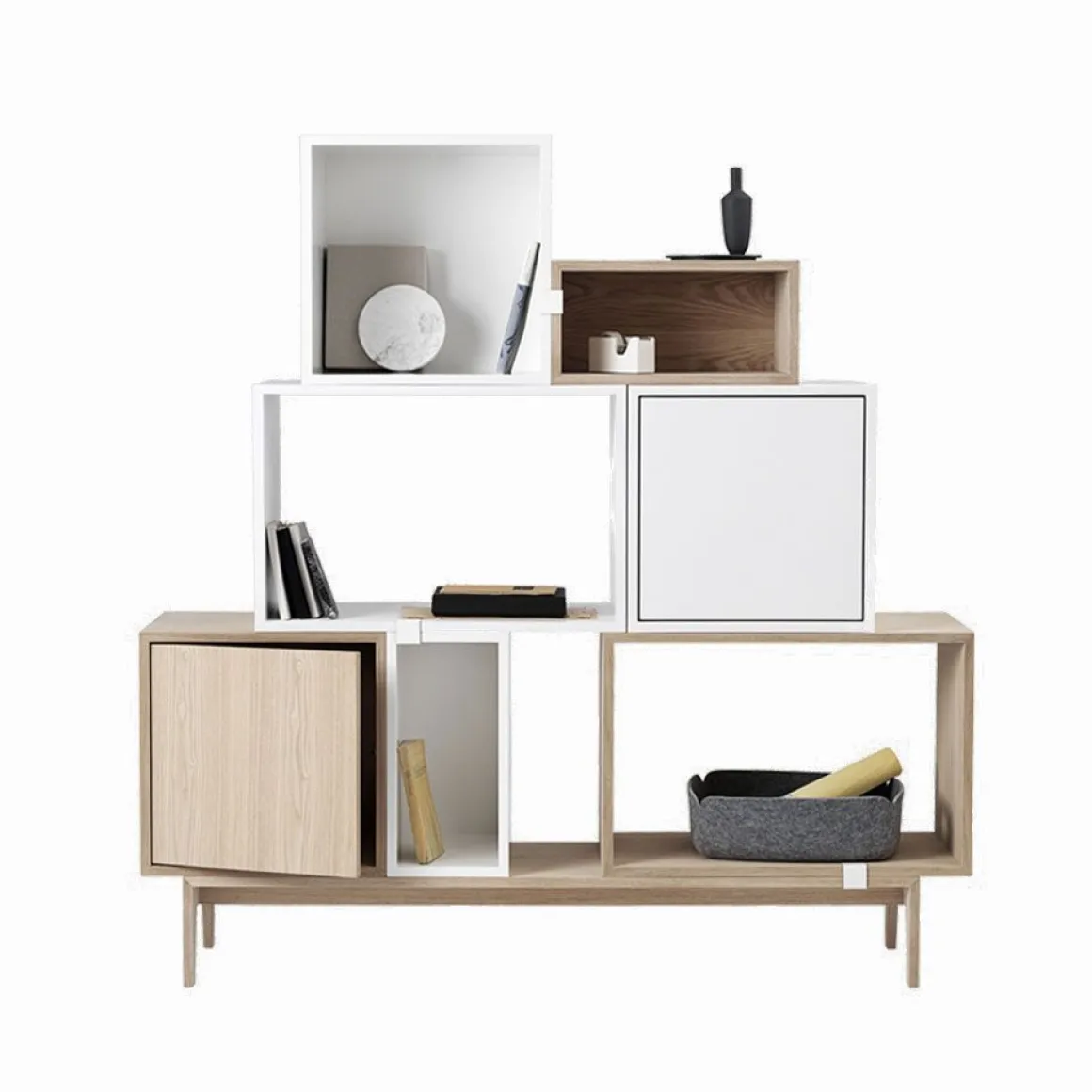 Muuto a ajouté une porte à son système de rangement iconique Stacked. Une fonction d’ouverture-poussoir doux assure un accès facile à vos affaires.
